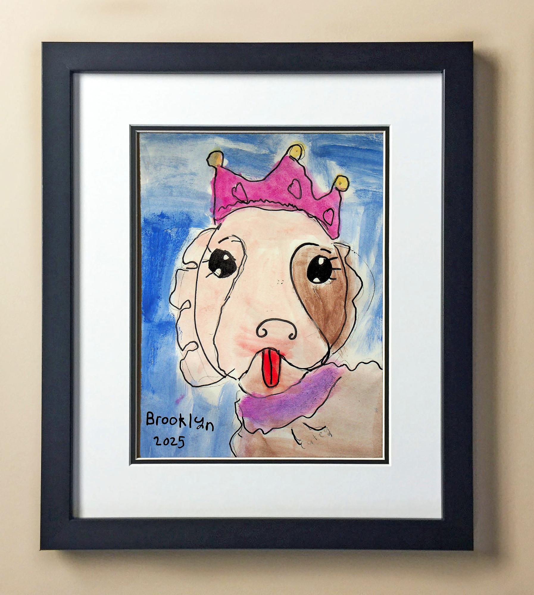Included with the purchase is the Students Artwork, Frame, double matboard, shatter proof plexiglass, and a ready to hang backerboard with turnbuttons