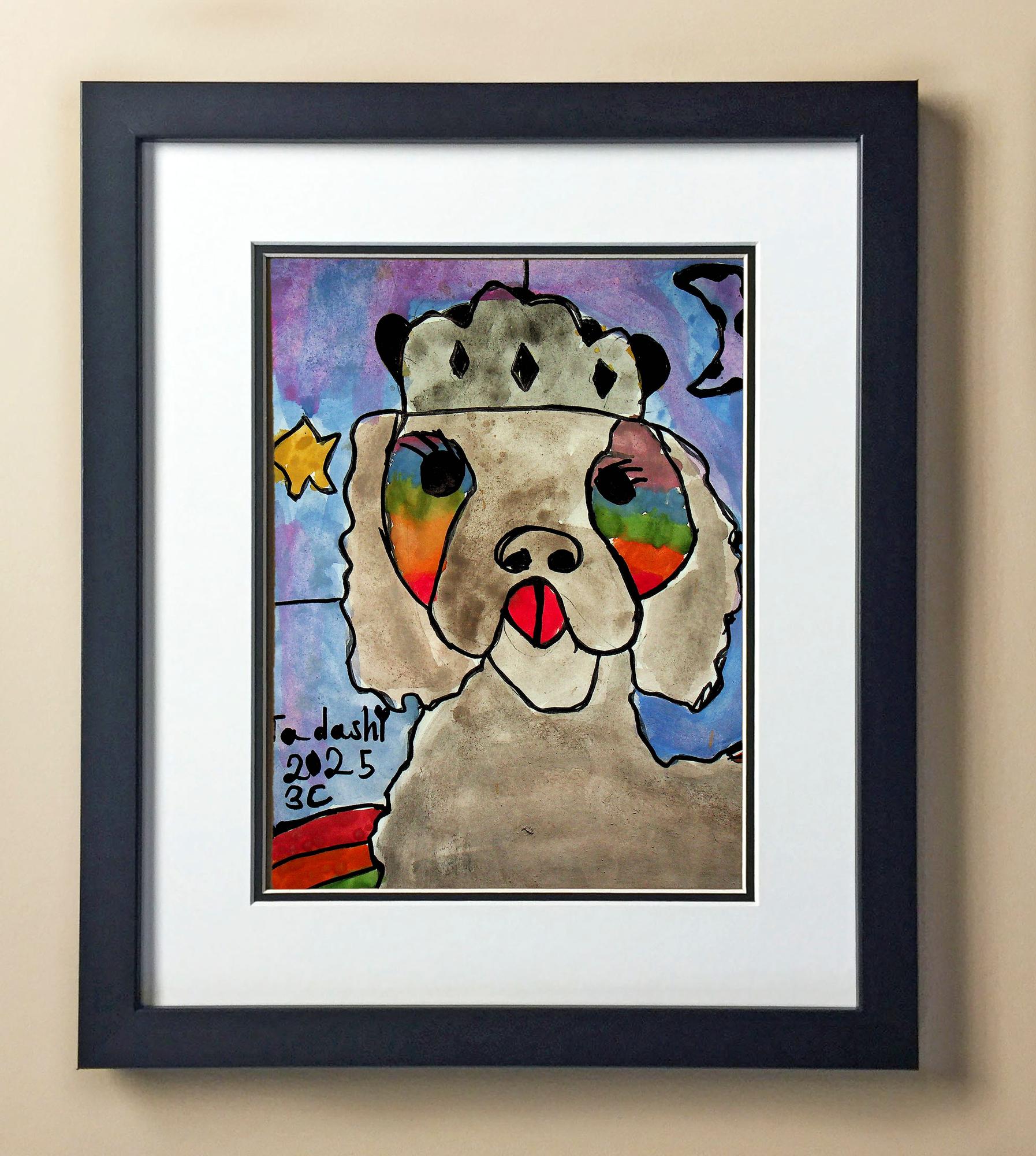 Included with the purchase is the Students Artwork, Frame, double matboard, shatter proof plexiglass, and a ready to hang backerboard with turnbuttons