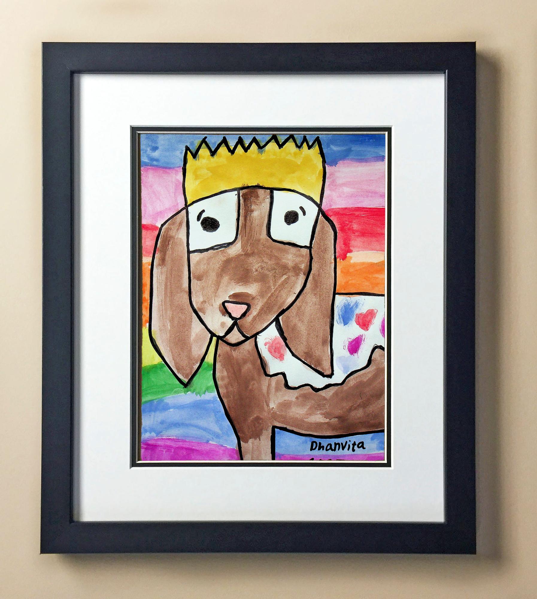 Included with the purchase is the Students Artwork, Frame, double matboard, shatter proof plexiglass, and a ready to hang backerboard with turnbuttons