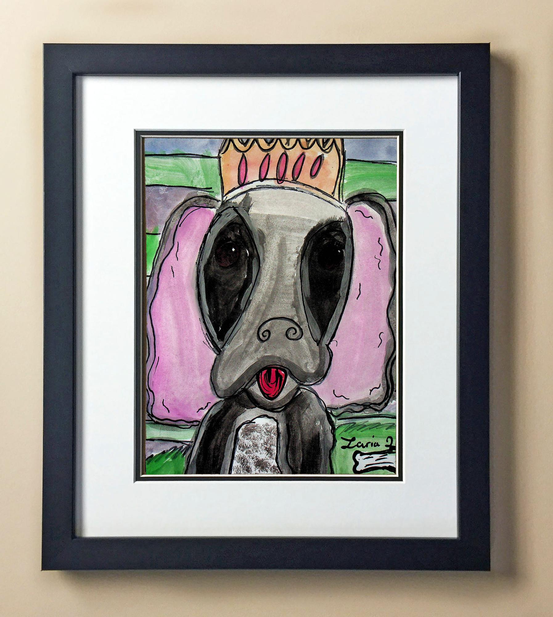 Included with the purchase is the Students Artwork, Frame, double matboard, shatter proof plexiglass, and a ready to hang backerboard with turnbuttons