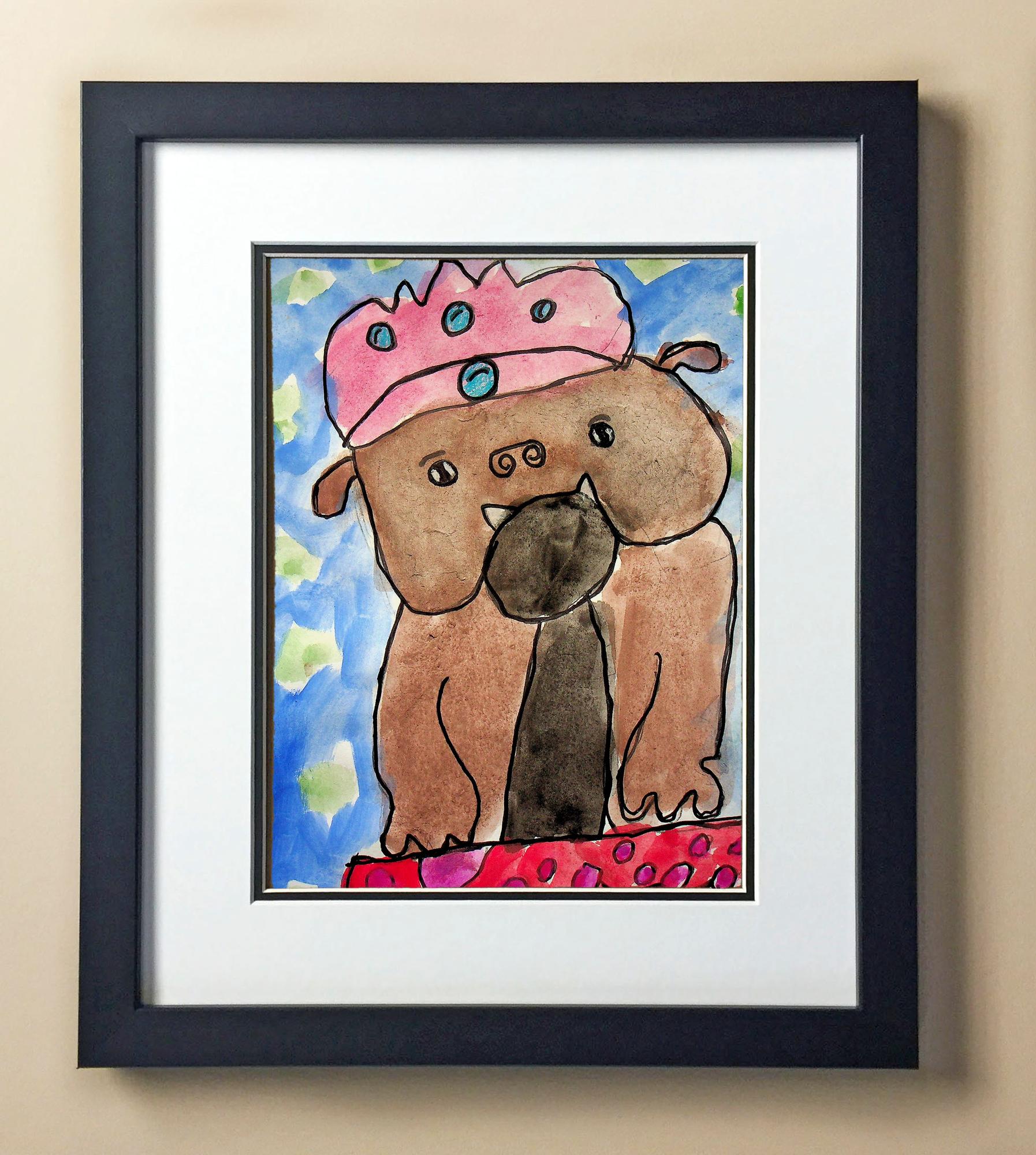 Included with the purchase is the Students Artwork, Frame, double matboard, shatter proof plexiglass, and a ready to hang backerboard with turnbuttons