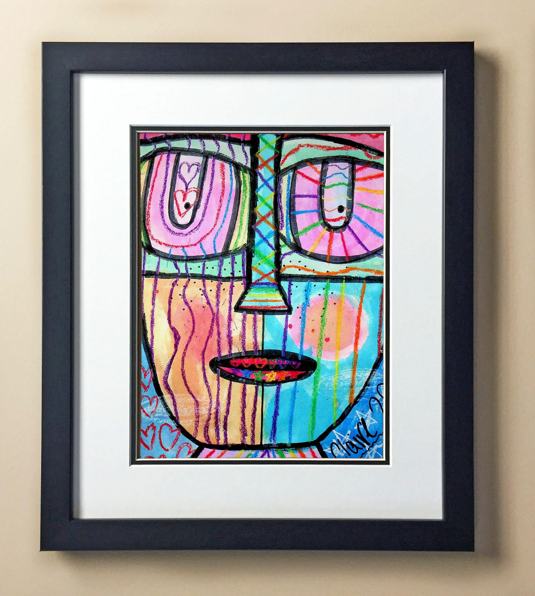 Included with the purchase is the Students Artwork, Frame, double matboard, shatter proof plexiglass, and a ready to hang backerboard with turnbuttons