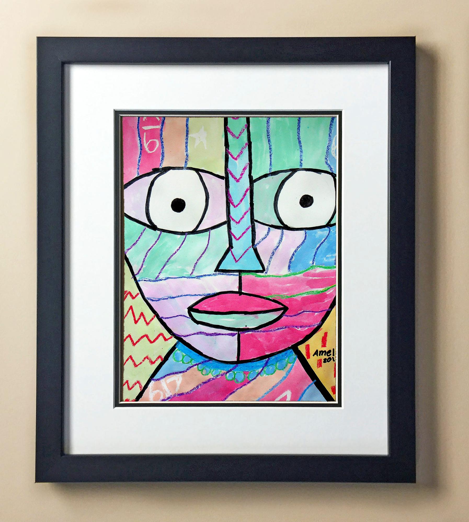 Included with the purchase is the Students Artwork, Frame, double matboard, shatter proof plexiglass, and a ready to hang backerboard with turnbuttons