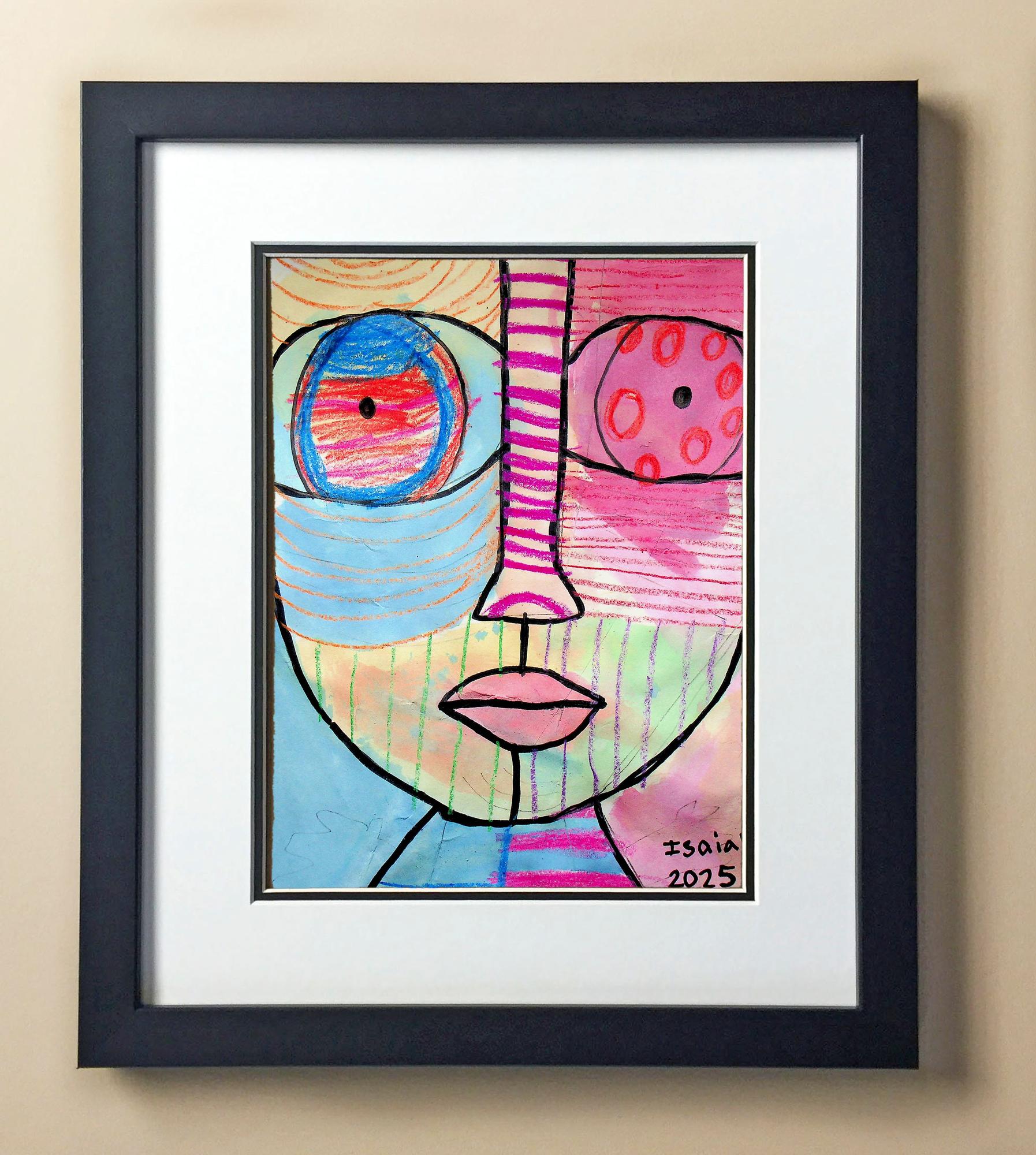 Included with the purchase is the Students Artwork, Frame, double matboard, shatter proof plexiglass, and a ready to hang backerboard with turnbuttons