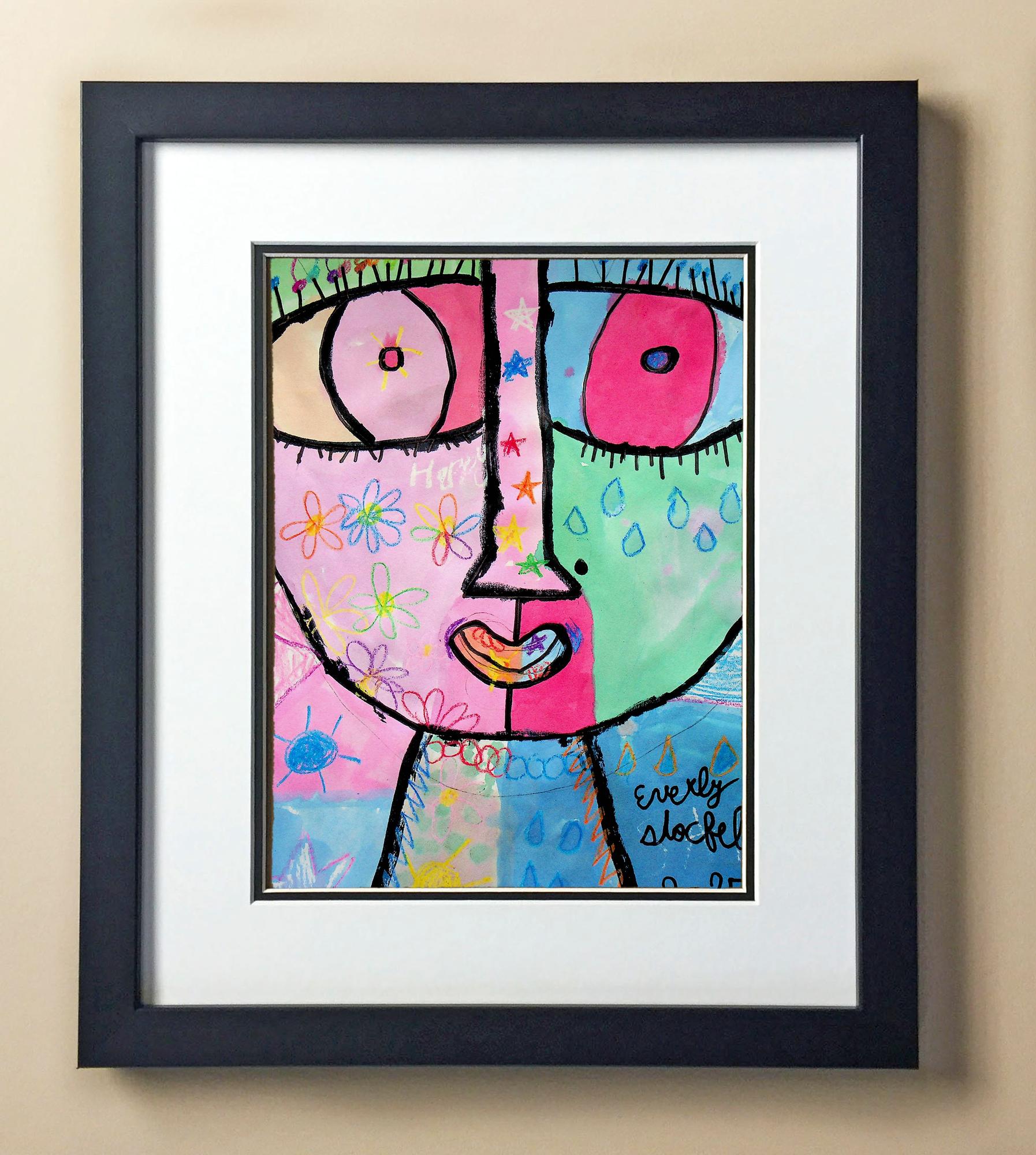 Included with the purchase is the Students Artwork, Frame, double matboard, shatter proof plexiglass, and a ready to hang backerboard with turnbuttons