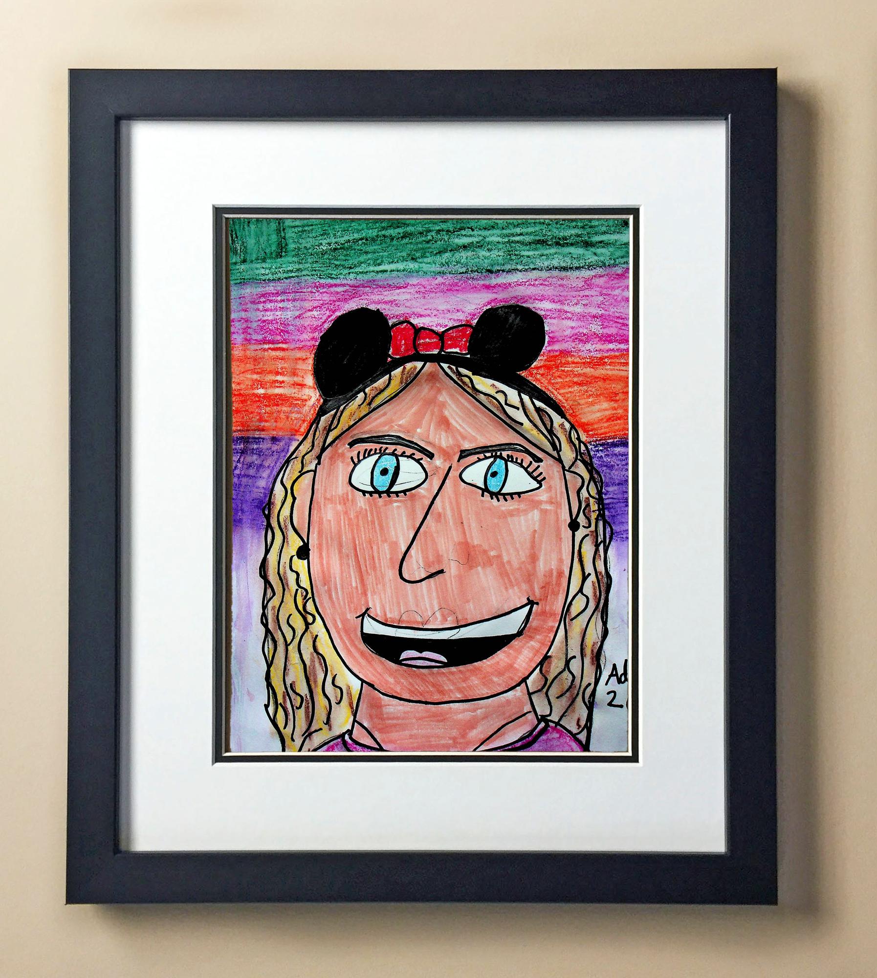 Included with the purchase is the Students Artwork, Frame, double matboard, shatter proof plexiglass, and a ready to hang backerboard with turnbuttons