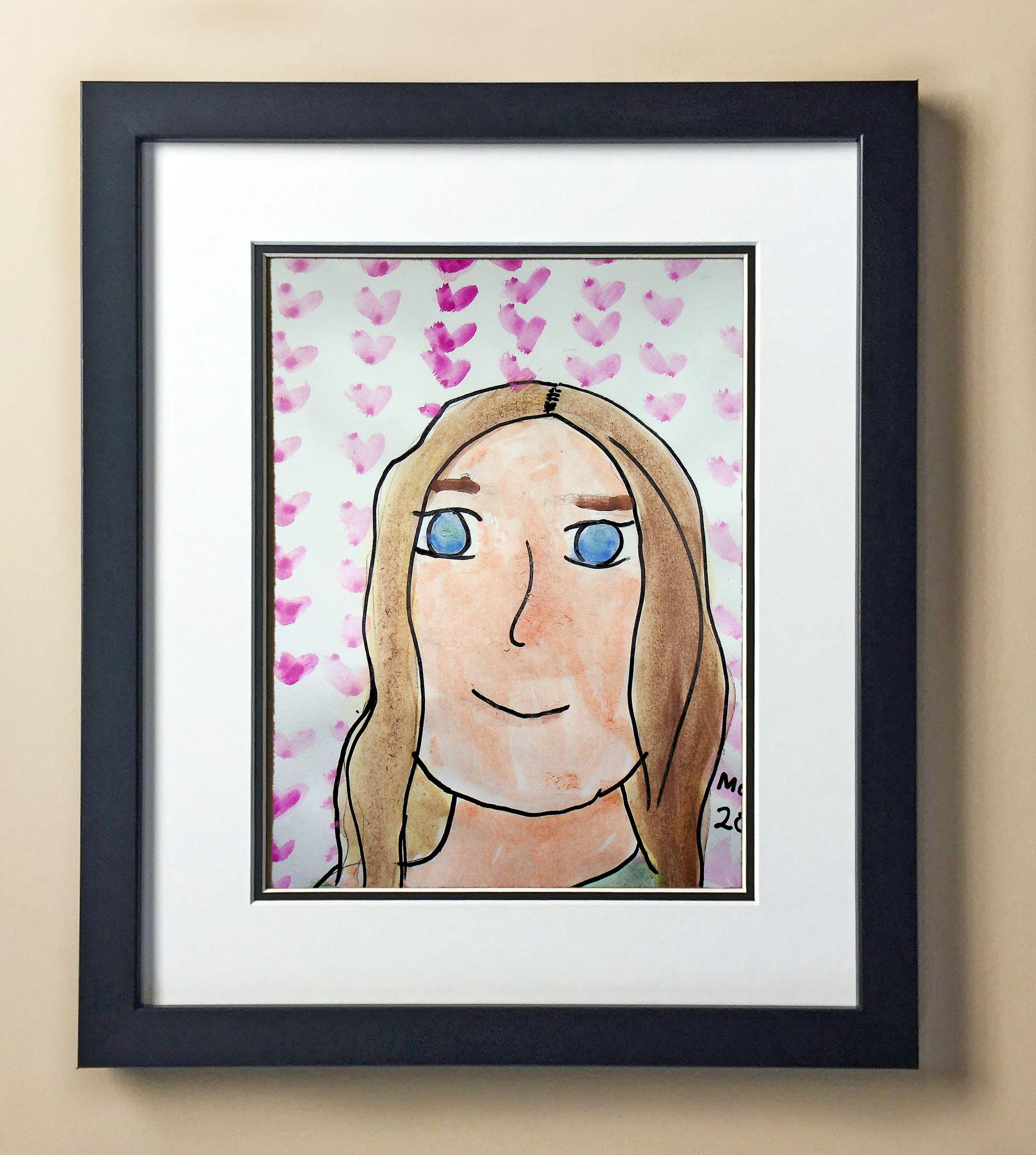 Included with the purchase is the Students Artwork, Frame, double matboard, shatter proof plexiglass, and a ready to hang backerboard with turnbuttons