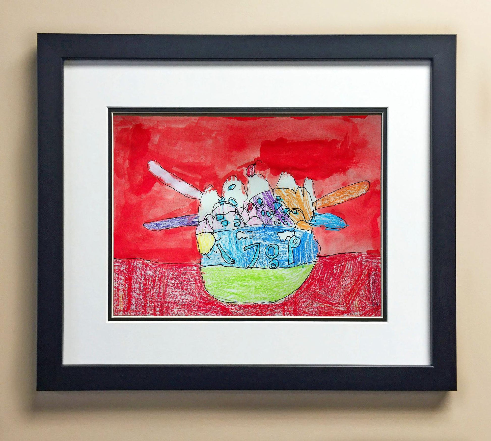 Included with the purchase is the Students Artwork, Frame, double matboard, shatter proof plexiglass, and a ready to hang backerboard with turnbuttons
