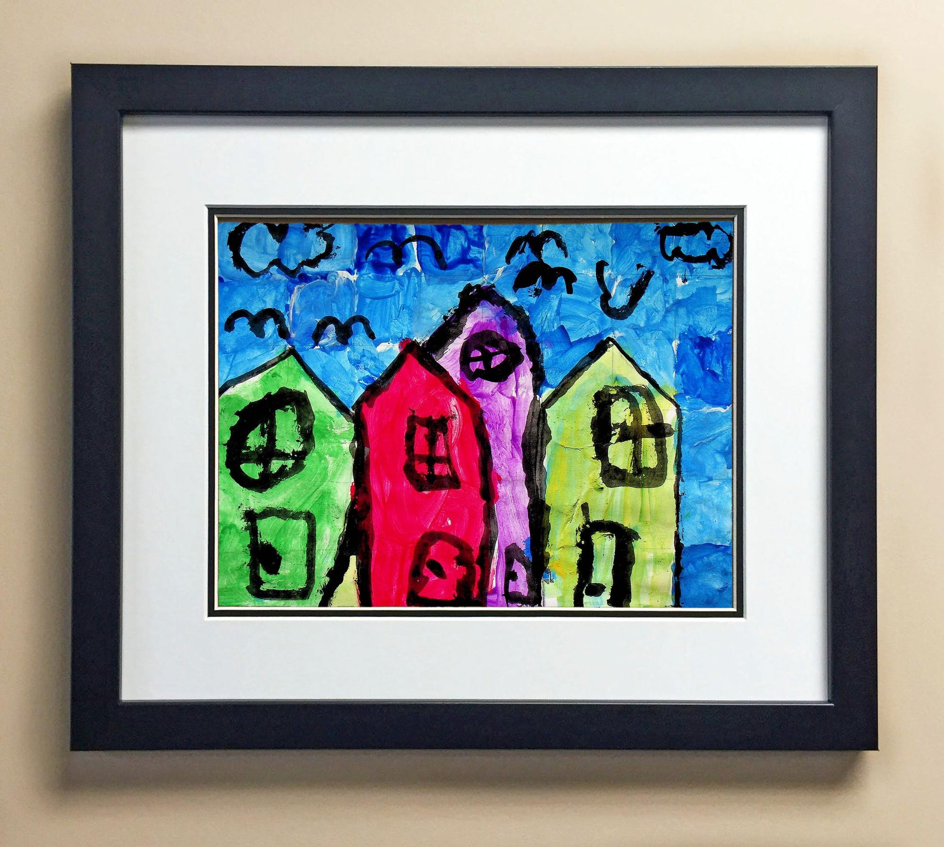Included with the purchase is the Students Artwork, Frame, double matboard, shatter proof plexiglass, and a ready to hang backerboard with turnbuttons