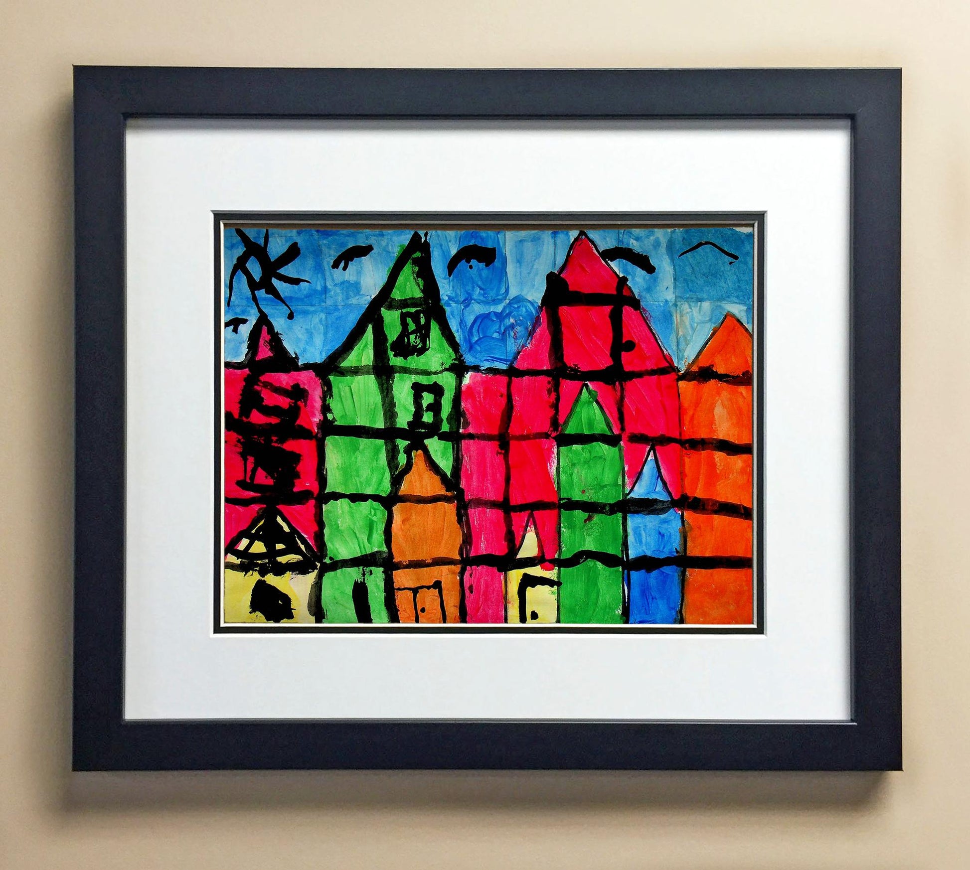 Included with the purchase is the Students Artwork, Frame, double matboard, shatter proof plexiglass, and a ready to hang backerboard with turnbuttons