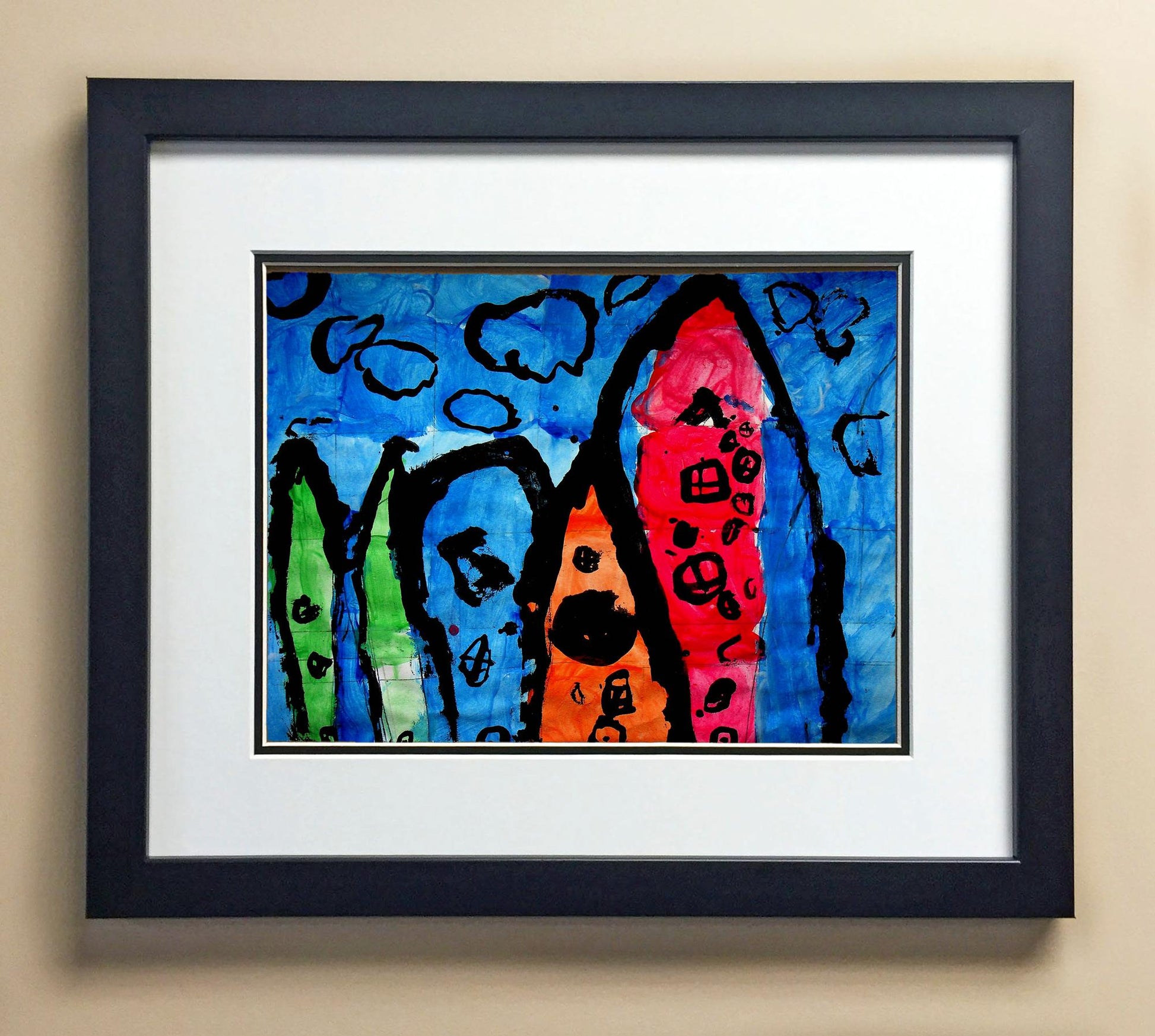Included with the purchase is the Students Artwork, Frame, double matboard, shatter proof plexiglass, and a ready to hang backerboard with turnbuttons