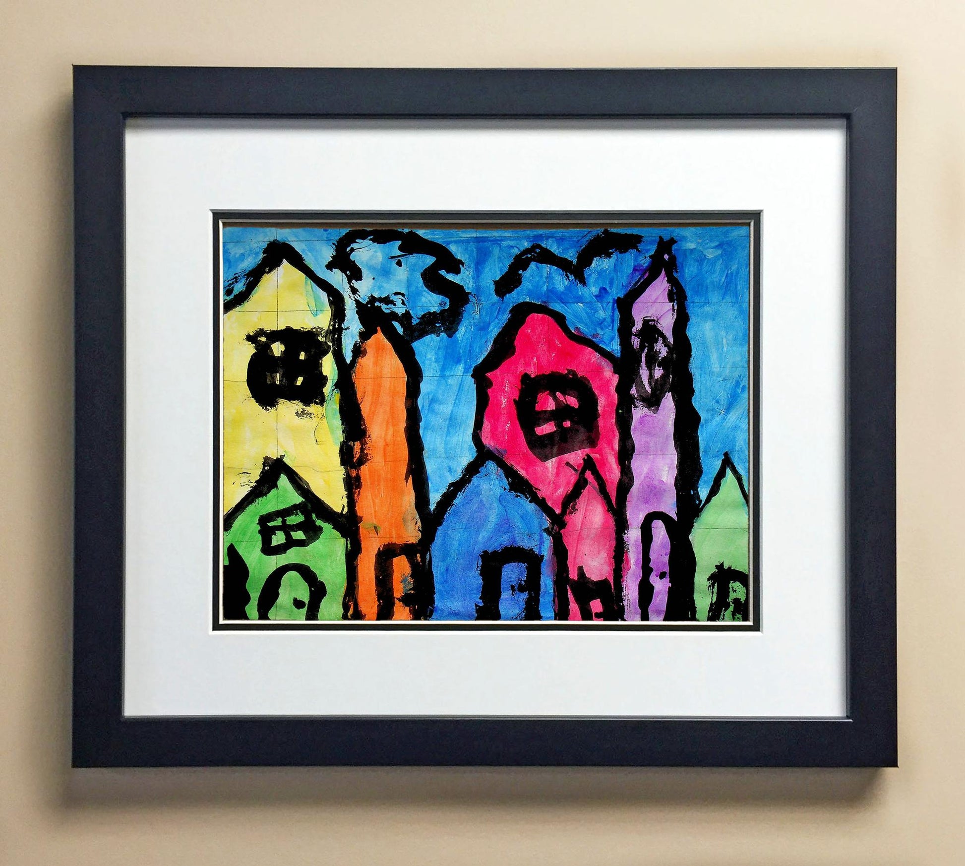 Included with the purchase is the Students Artwork, Frame, double matboard, shatter proof plexiglass, and a ready to hang backerboard with turnbuttons