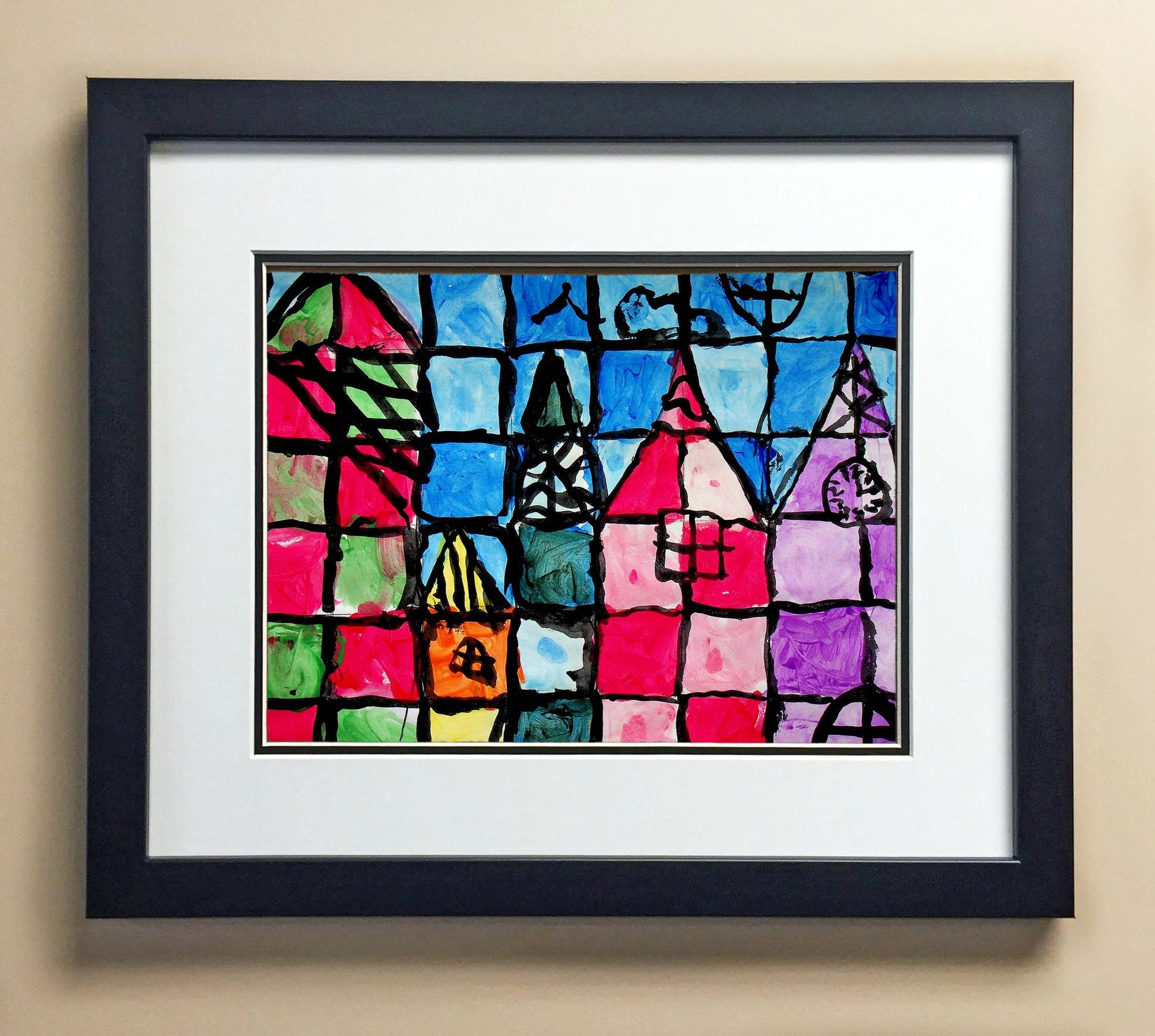 Included with the purchase is the Students Artwork, Frame, double matboard, shatter proof plexiglass, and a ready to hang backerboard with turnbuttons