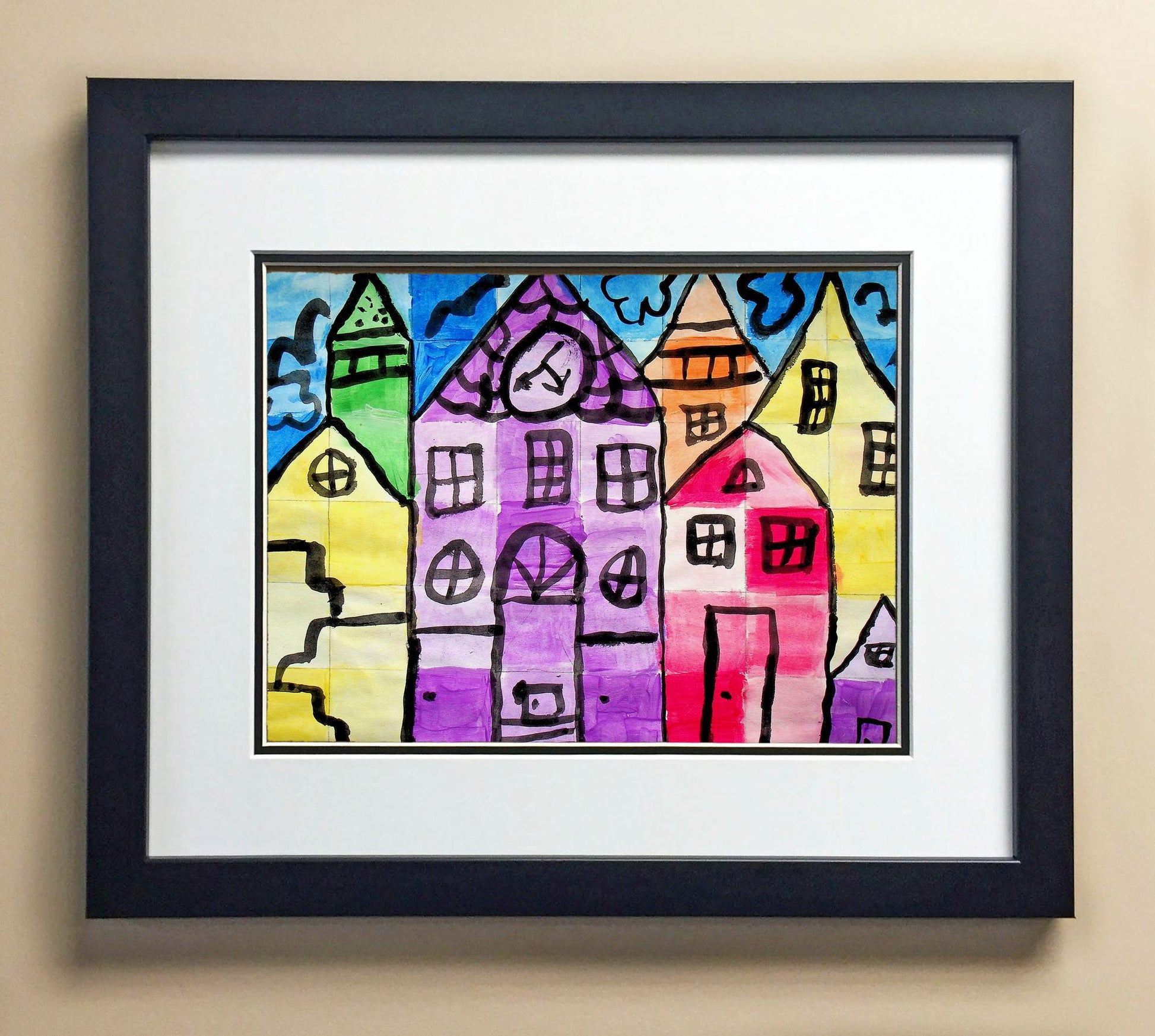Included with the purchase is the Students Artwork, Frame, double matboard, shatter proof plexiglass, and a ready to hang backerboard with turnbuttons