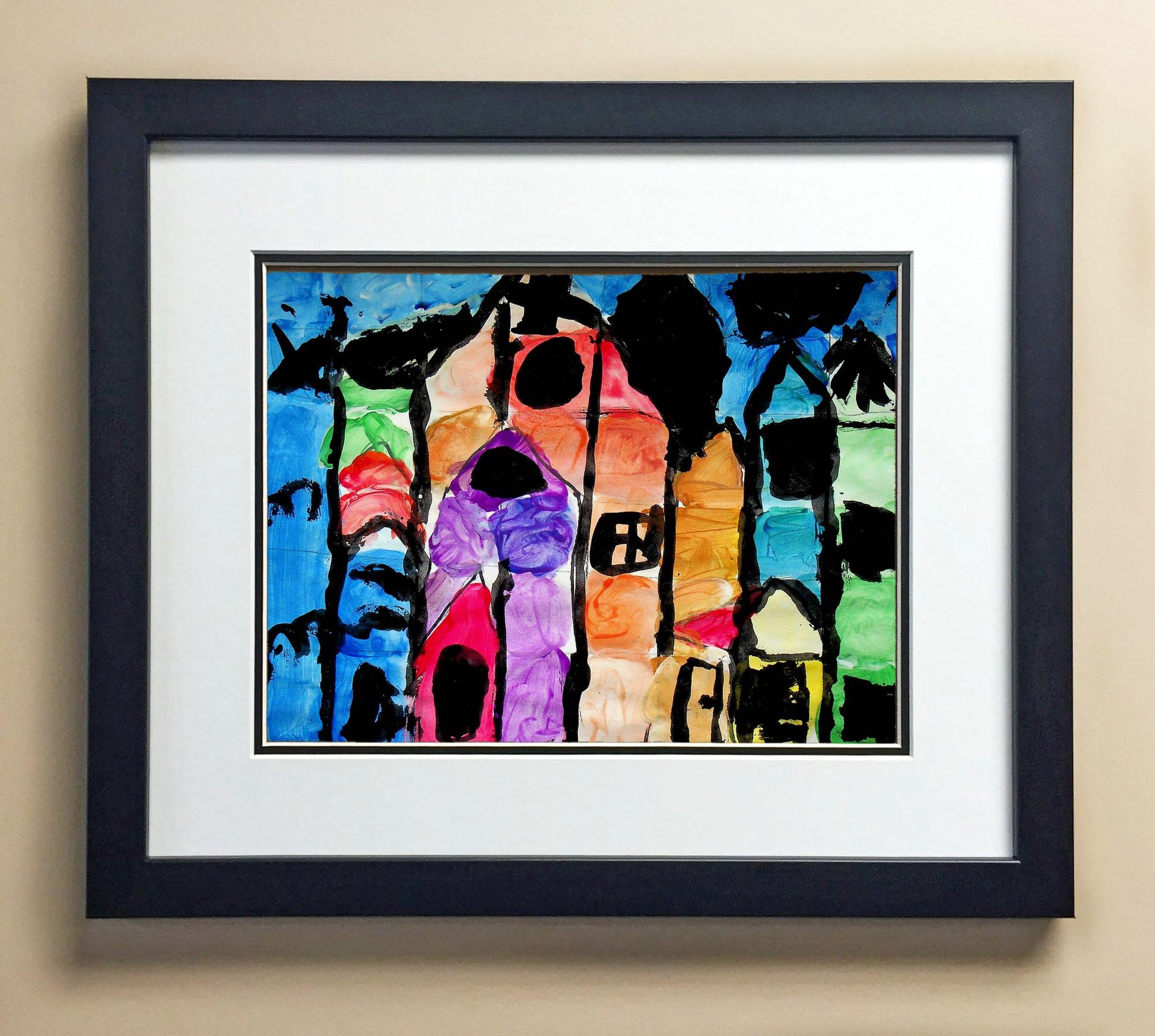 Included with the purchase is the Students Artwork, Frame, double matboard, shatter proof plexiglass, and a ready to hang backerboard with turnbuttons