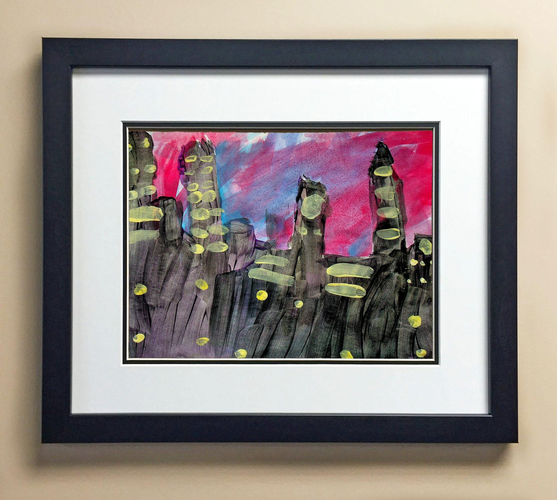 Included with the purchase is the Students Artwork, Frame, double matboard, shatter proof plexiglass, and a ready to hang backerboard with turnbuttons