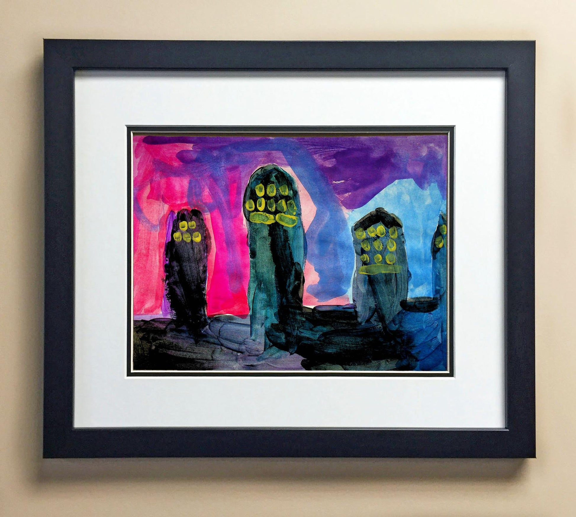 Included with the purchase is the Students Artwork, Frame, double matboard, shatter proof plexiglass, and a ready to hang backerboard with turnbuttons