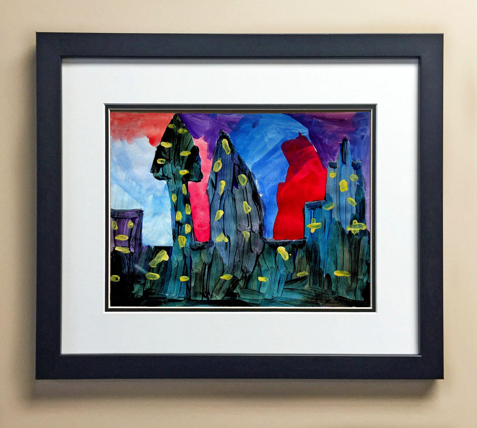 Included with the purchase is the Students Artwork, Frame, double matboard, shatter proof plexiglass, and a ready to hang backerboard with turnbuttons