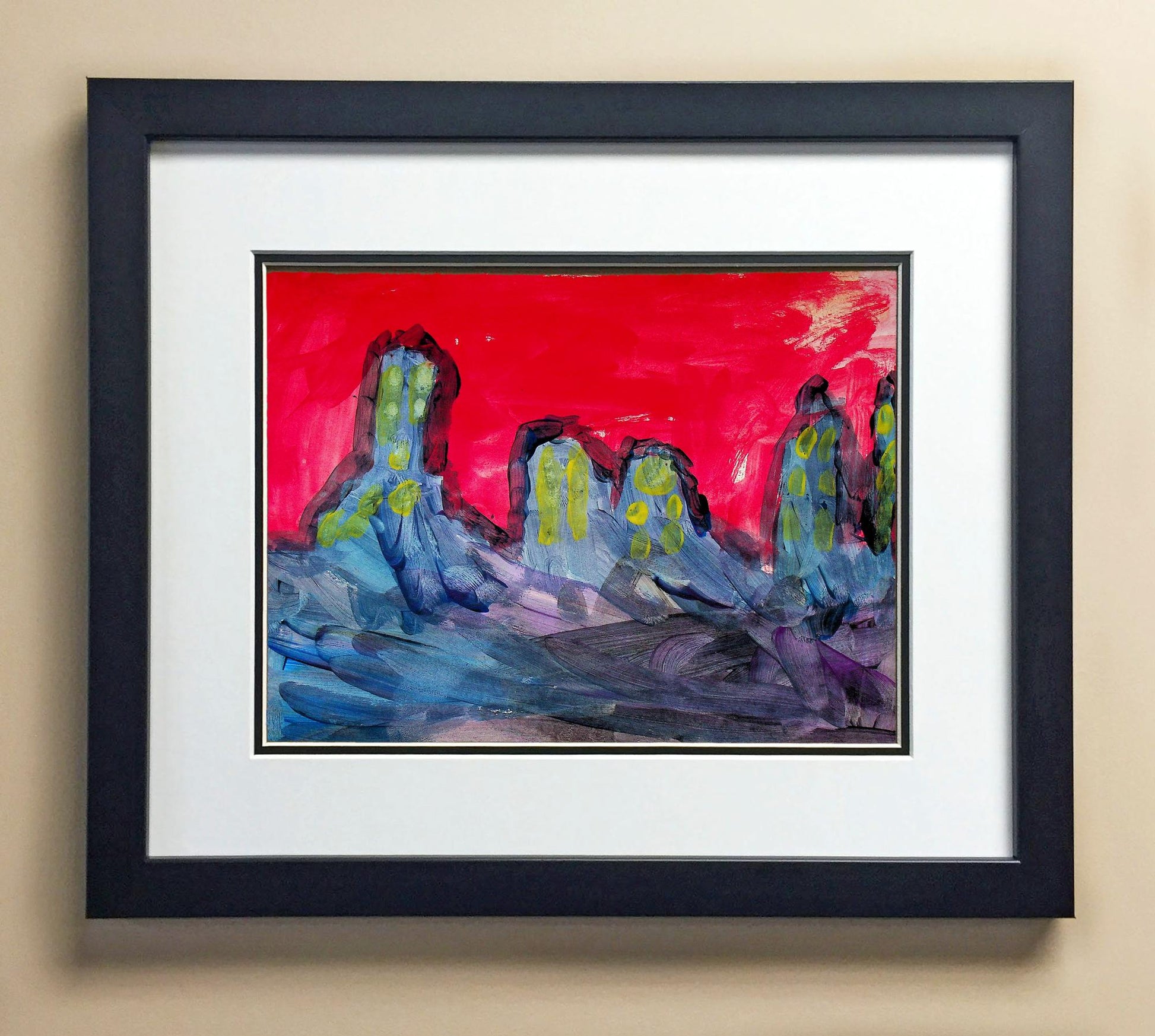 Included with the purchase is the Students Artwork, Frame, double matboard, shatter proof plexiglass, and a ready to hang backerboard with turnbuttons