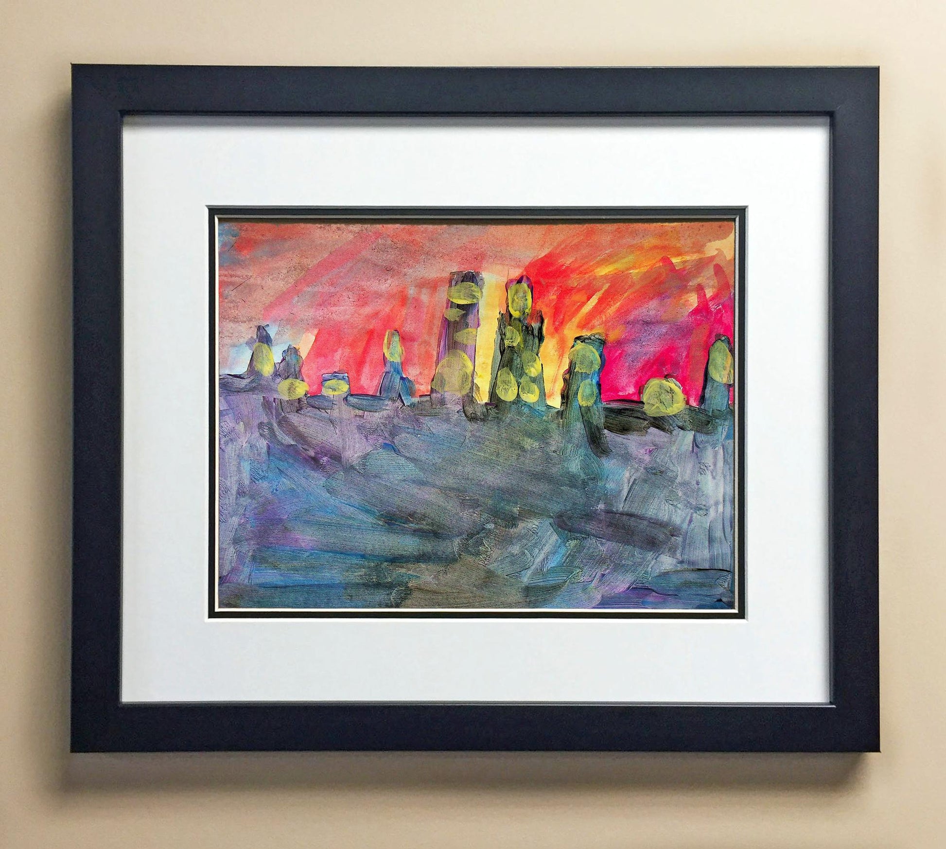 Included with the purchase is the Students Artwork, Frame, double matboard, shatter proof plexiglass, and a ready to hang backerboard with turnbuttons
