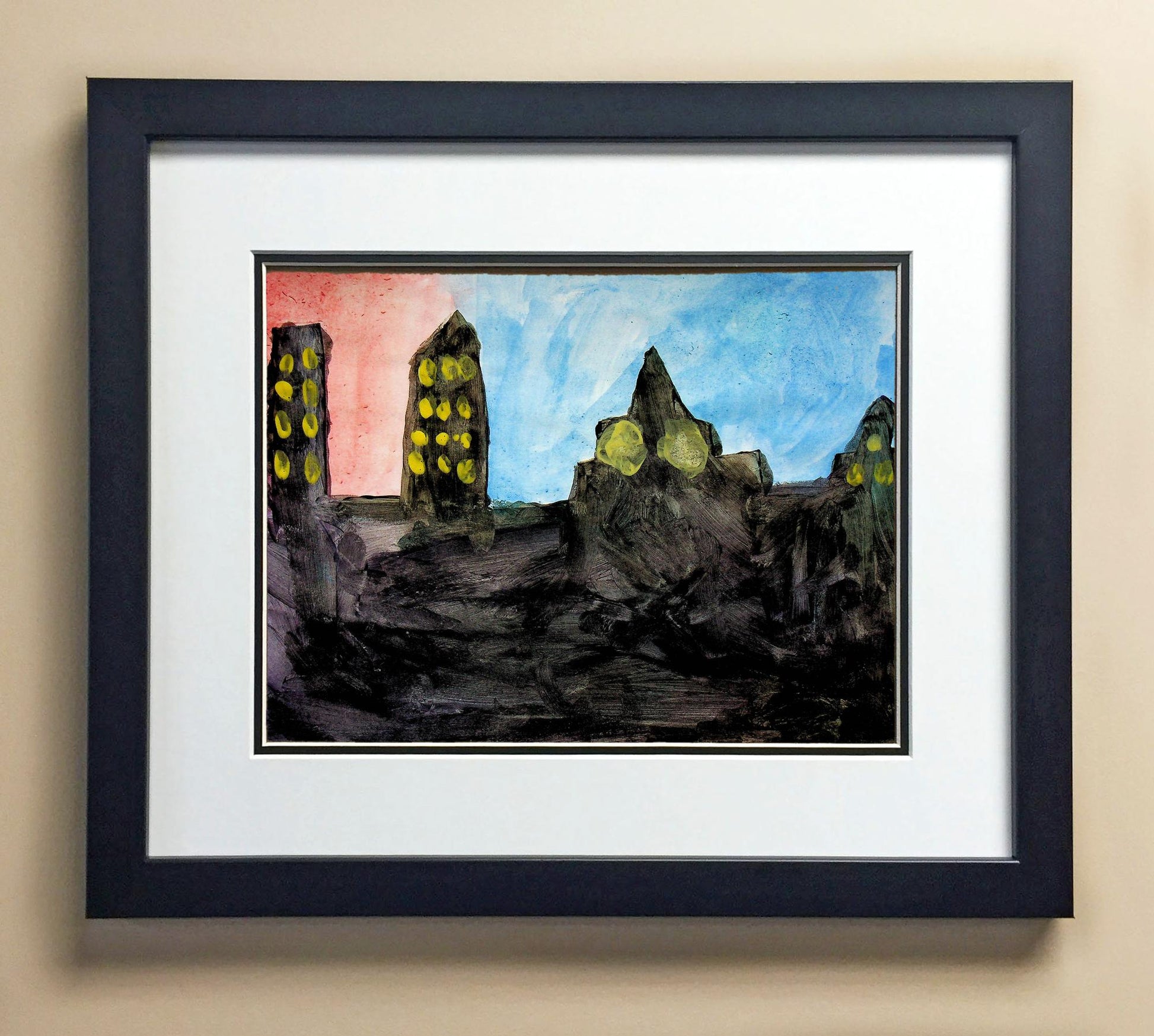 Included with the purchase is the Students Artwork, Frame, double matboard, shatter proof plexiglass, and a ready to hang backerboard with turnbuttons