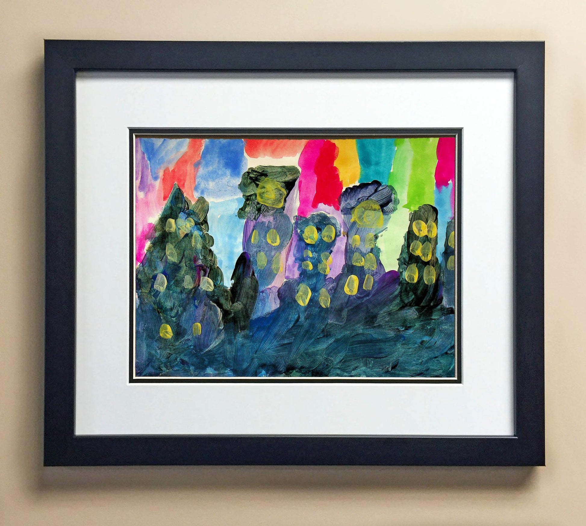 Included with the purchase is the Students Artwork, Frame, double matboard, shatter proof plexiglass, and a ready to hang backerboard with turnbuttons