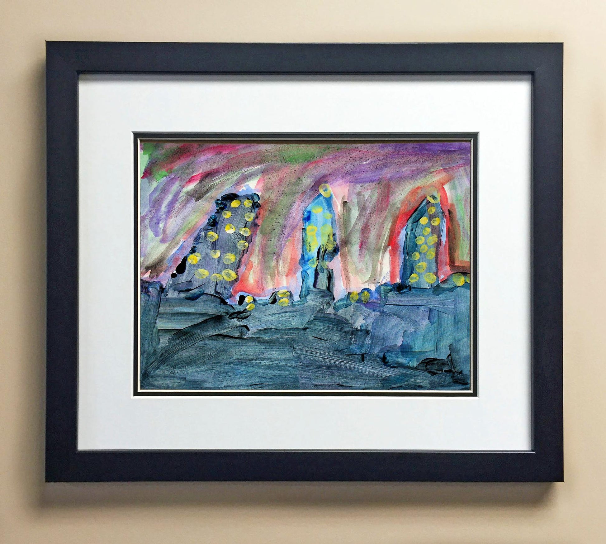 Included with the purchase is the Students Artwork, Frame, double matboard, shatter proof plexiglass, and a ready to hang backerboard with turnbuttons