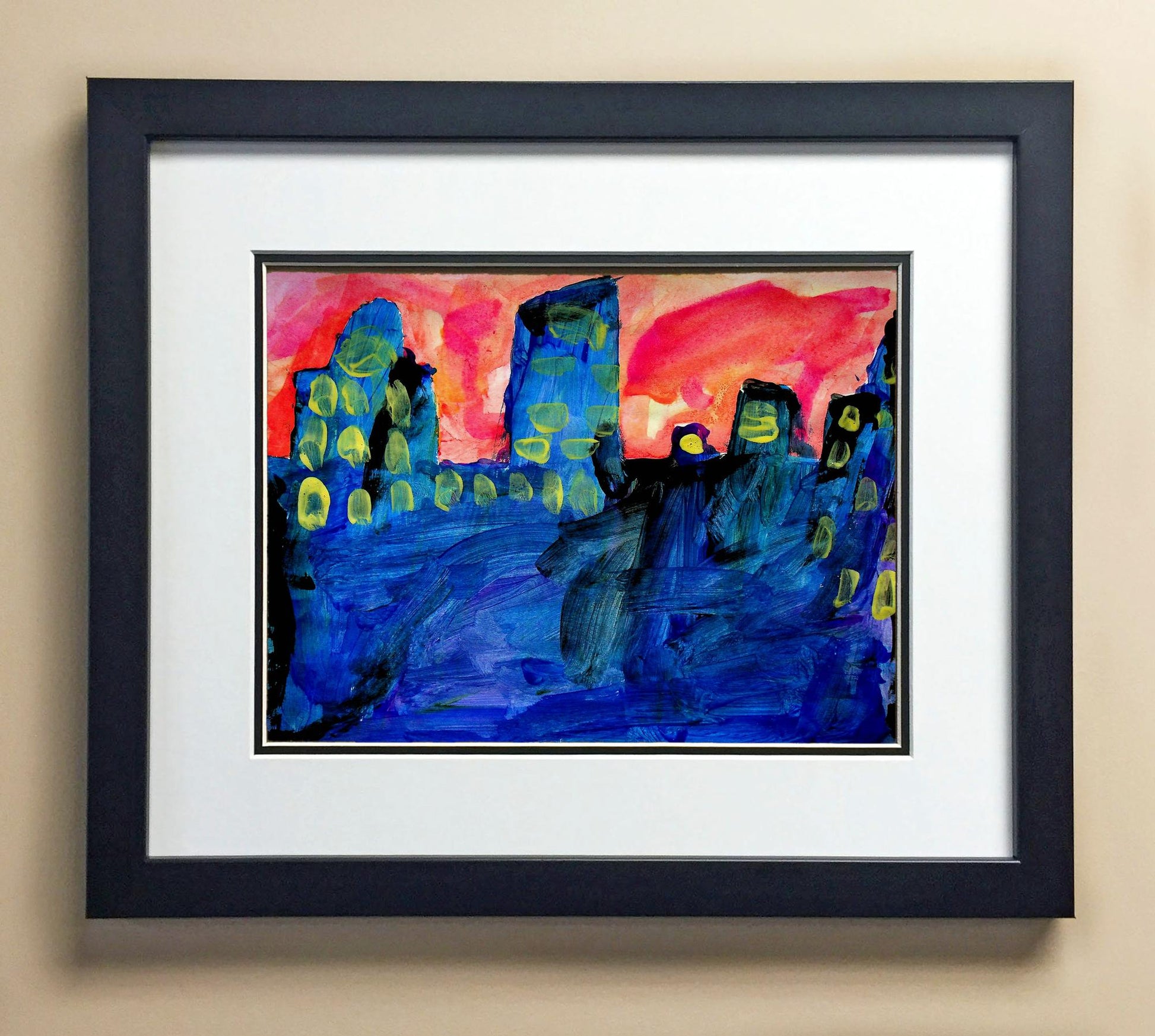 Included with the purchase is the Students Artwork, Frame, double matboard, shatter proof plexiglass, and a ready to hang backerboard with turnbuttons