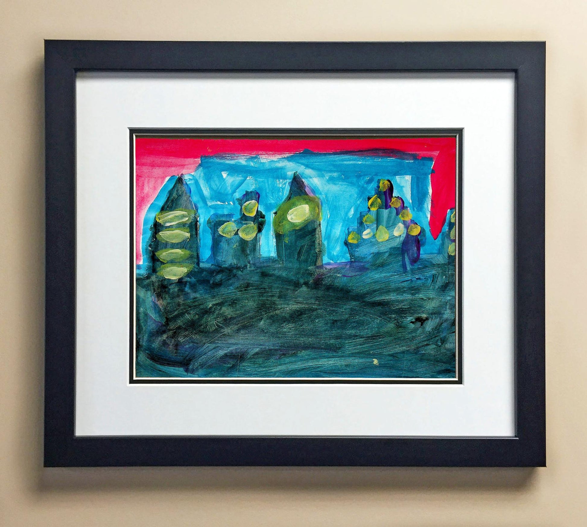 Included with the purchase is the Students Artwork, Frame, double matboard, shatter proof plexiglass, and a ready to hang backerboard with turnbuttons