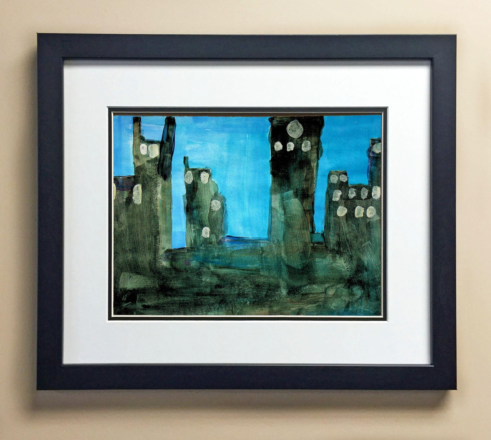 Included with the purchase is the Students Artwork, Frame, double matboard, shatter proof plexiglass, and a ready to hang backerboard with turnbuttons