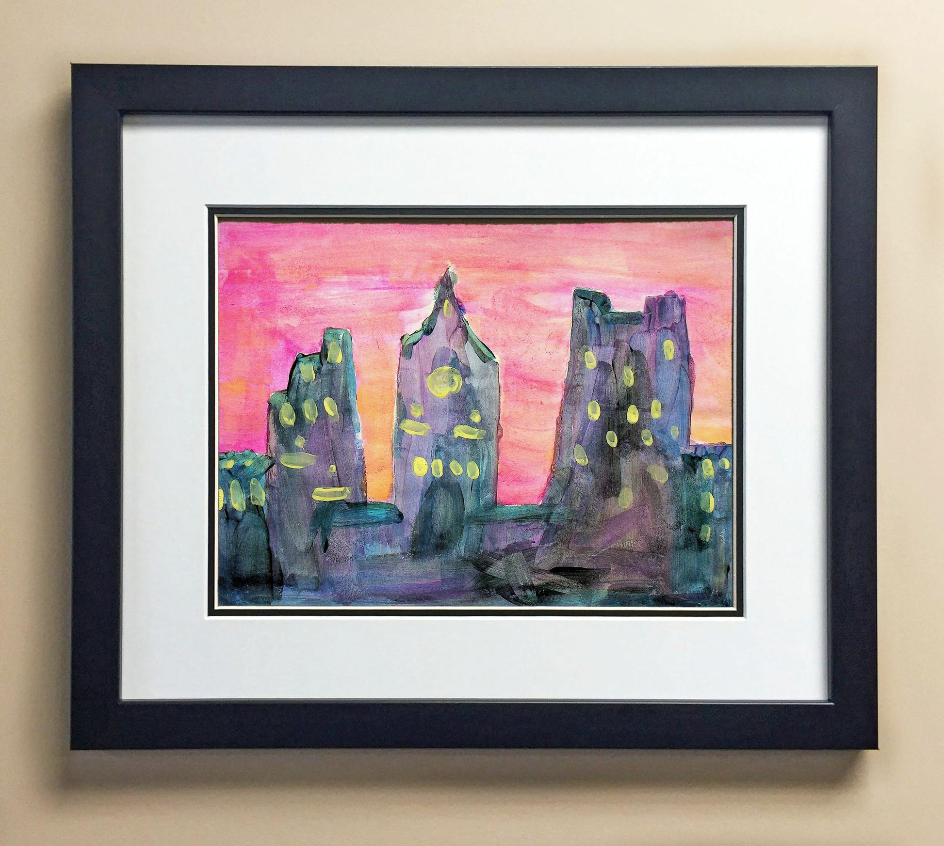 Included with the purchase is the Students Artwork, Frame, double matboard, shatter proof plexiglass, and a ready to hang backerboard with turnbuttons