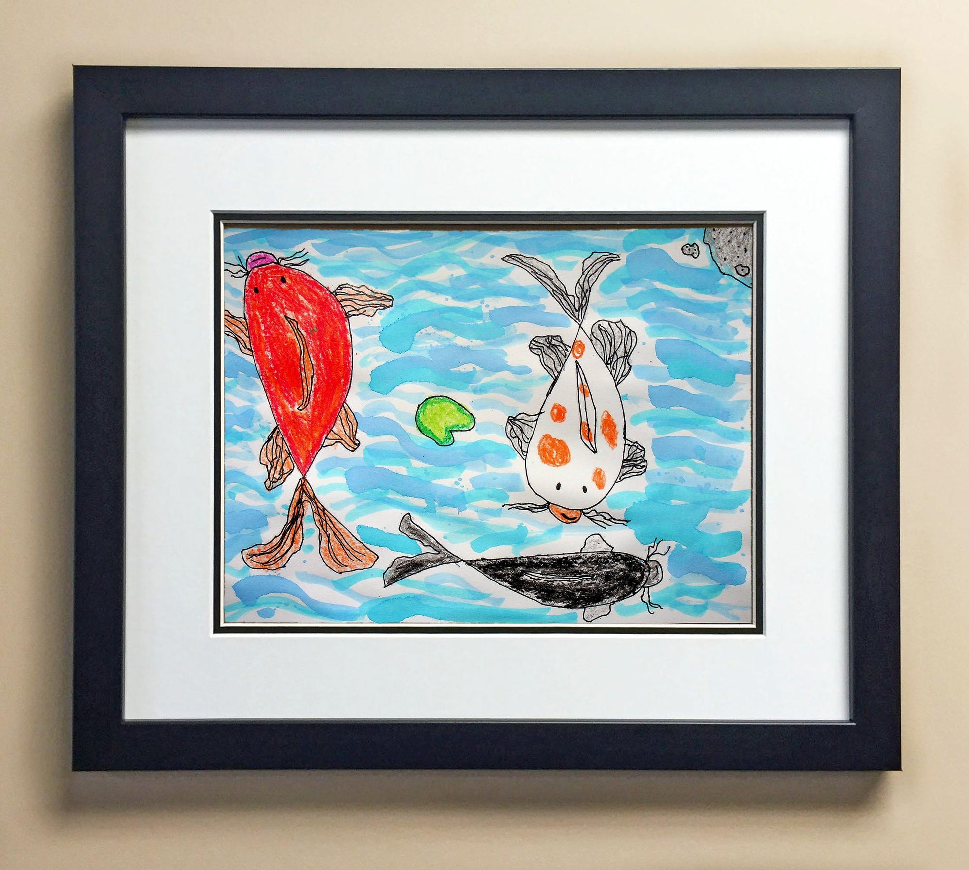 Included with the purchase is the Students Artwork, Frame, double matboard, shatter proof plexiglass, and a ready to hang backerboard with turnbuttons