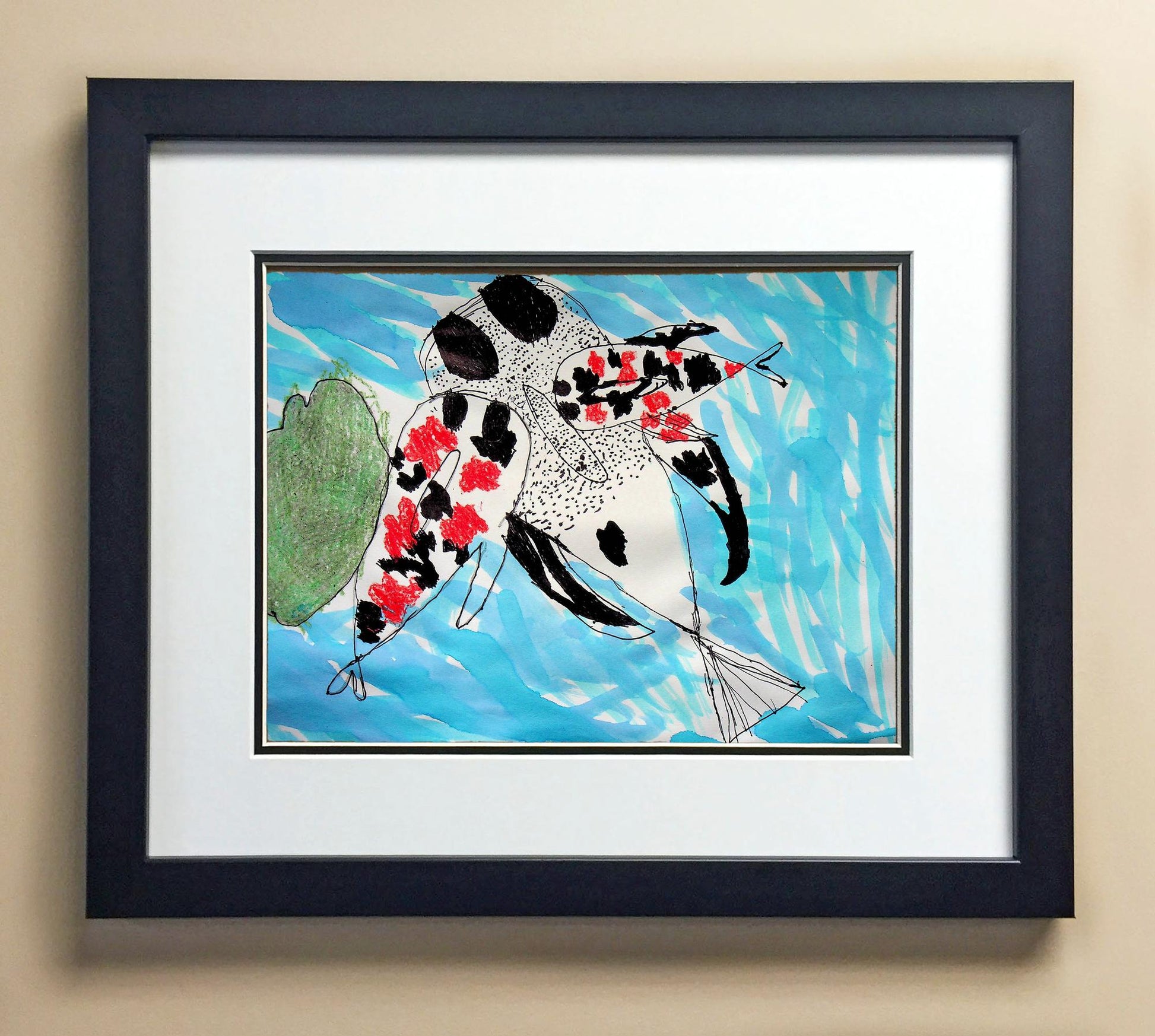Included with the purchase is the Students Artwork, Frame, double matboard, shatter proof plexiglass, and a ready to hang backerboard with turnbuttons