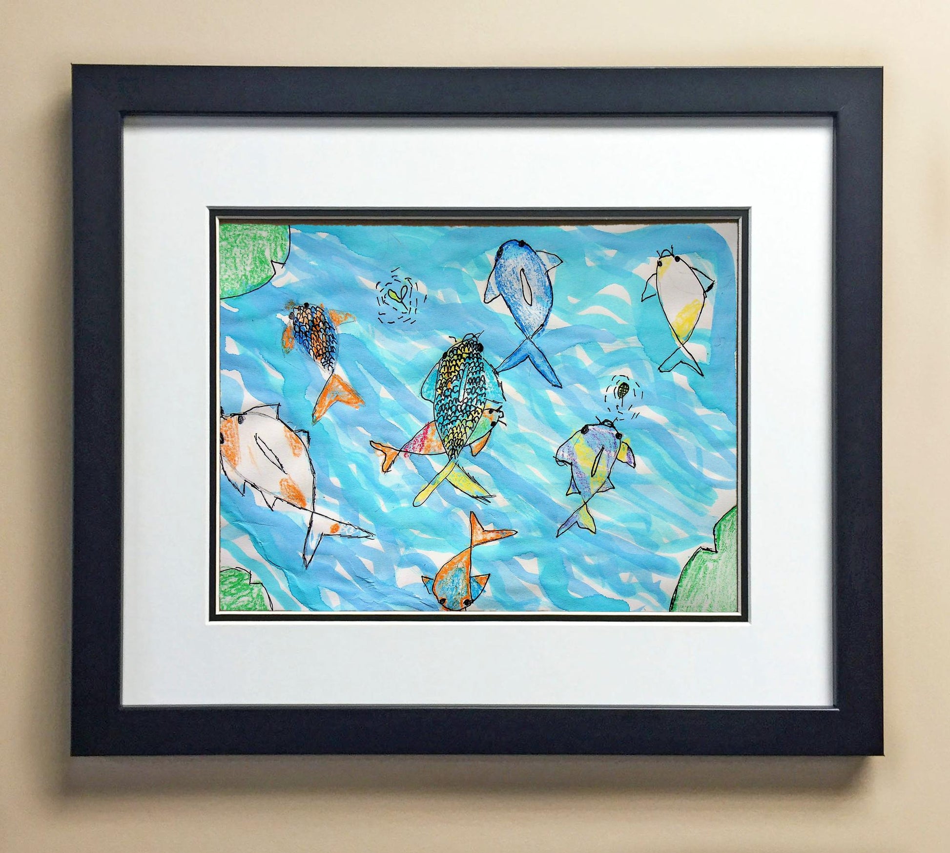 Included with the purchase is the Students Artwork, Frame, double matboard, shatter proof plexiglass, and a ready to hang backerboard with turnbuttons