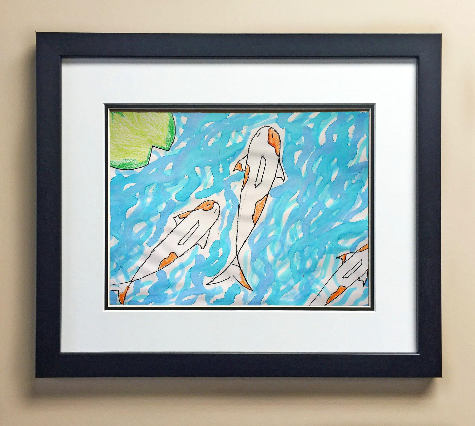 Included with the purchase is the Students Artwork, Frame, double matboard, shatter proof plexiglass, and a ready to hang backerboard with turnbuttons