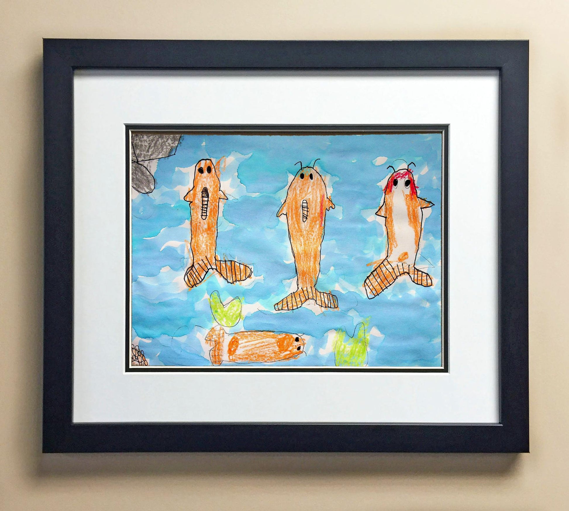 Included with the purchase is the Students Artwork, Frame, double matboard, shatter proof plexiglass, and a ready to hang backerboard with turnbuttons