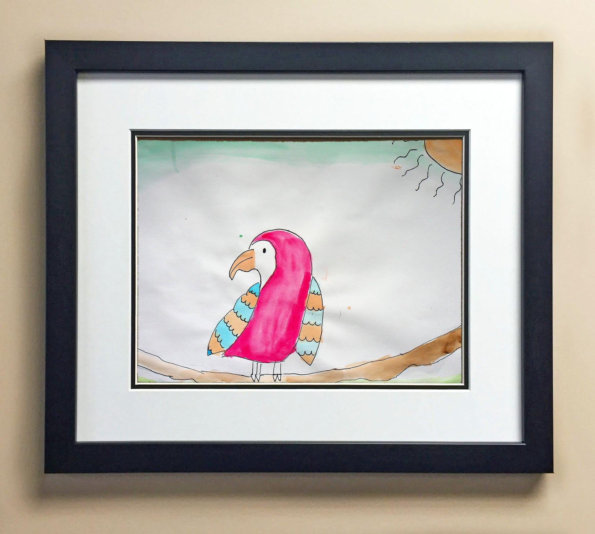 Included with the purchase is the Students Artwork, Frame, double matboard, shatter proof plexiglass, and a ready to hang backerboard with turnbuttons