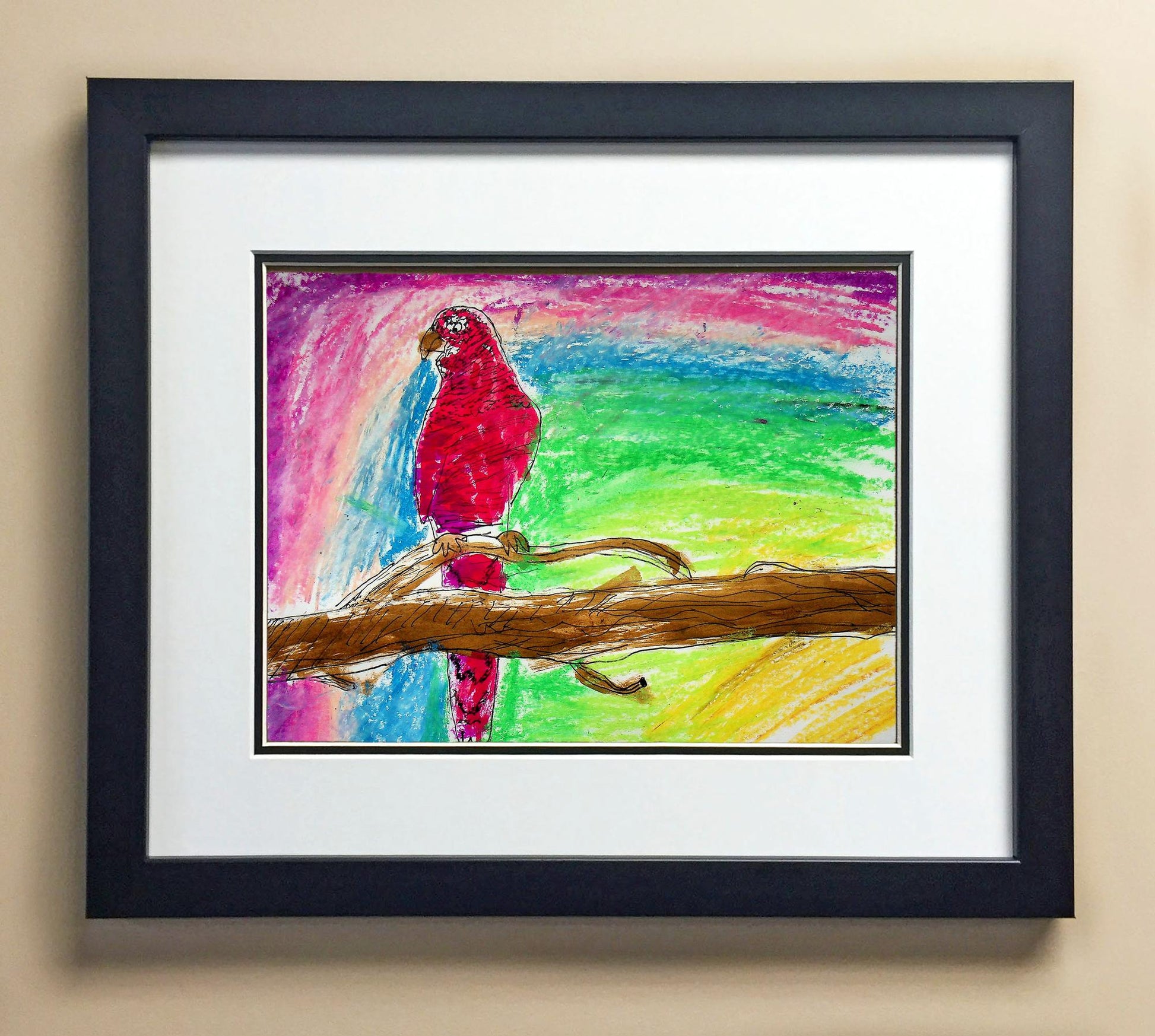 Included with the purchase is the Students Artwork, Frame, double matboard, shatter proof plexiglass, and a ready to hang backerboard with turnbuttons