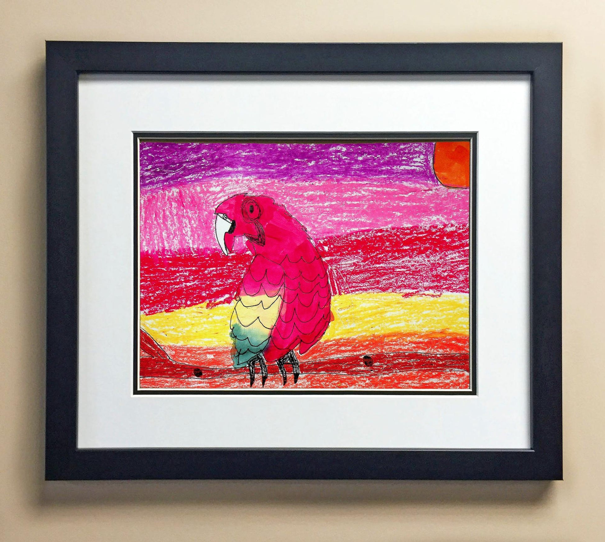 Included with the purchase is the Students Artwork, Frame, double matboard, shatter proof plexiglass, and a ready to hang backerboard with turnbuttons