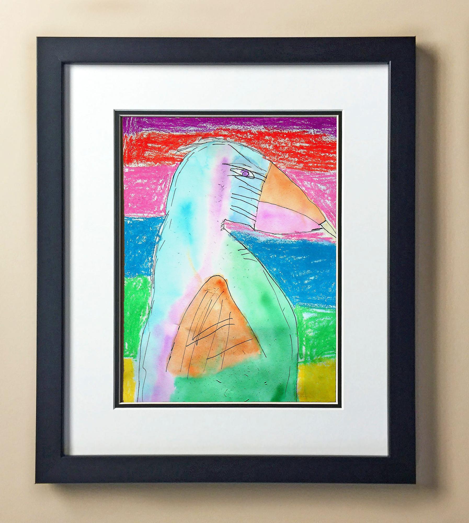 Included with the purchase is the Students Artwork, Frame, double matboard, shatter proof plexiglass, and a ready to hang backerboard with turnbuttons