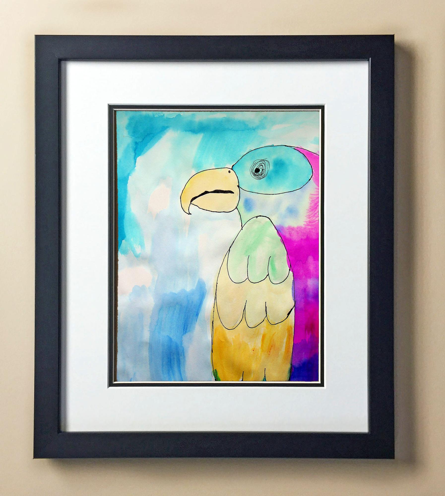 Included with the purchase is the Students Artwork, Frame, double matboard, shatter proof plexiglass, and a ready to hang backerboard with turnbuttons