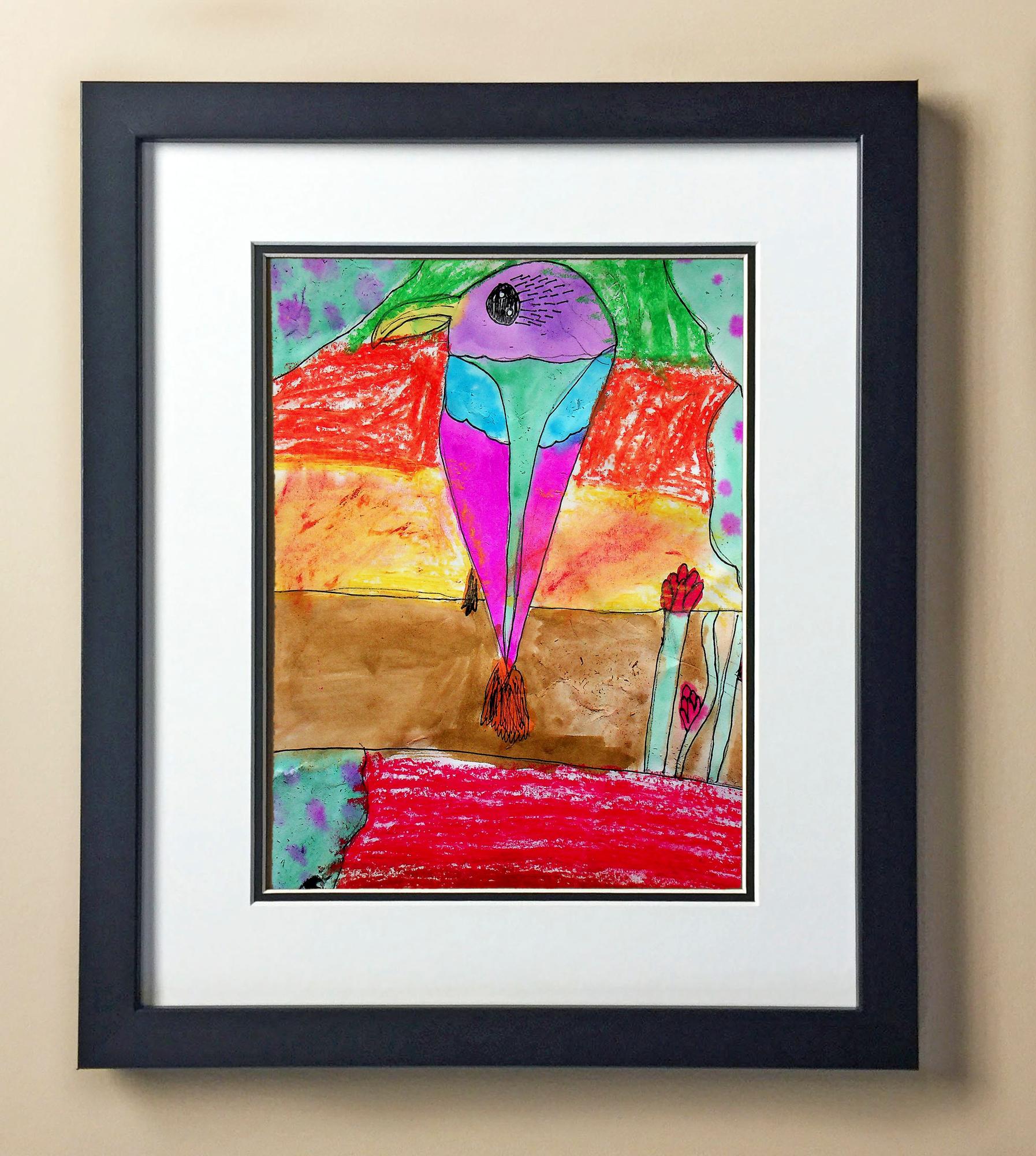 Included with the purchase is the Students Artwork, Frame, double matboard, shatter proof plexiglass, and a ready to hang backerboard with turnbuttons