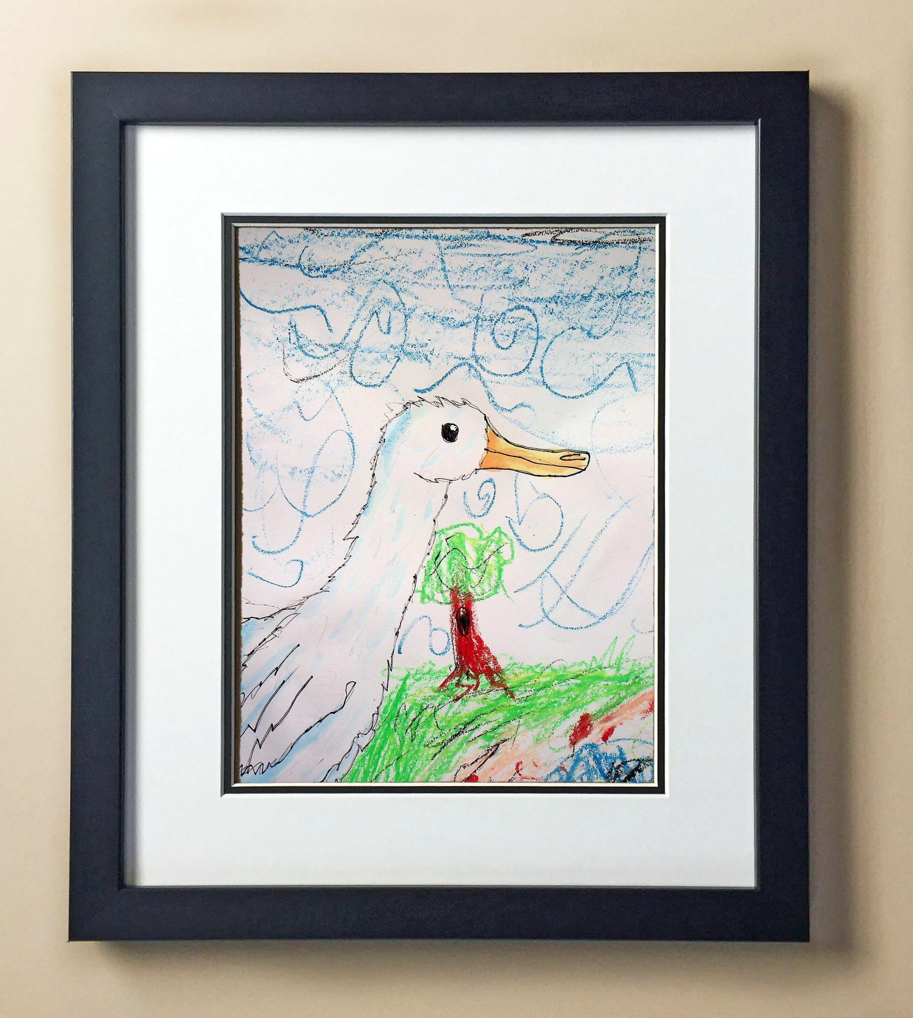 Included with the purchase is the Students Artwork, Frame, double matboard, shatter proof plexiglass, and a ready to hang backerboard with turnbuttons