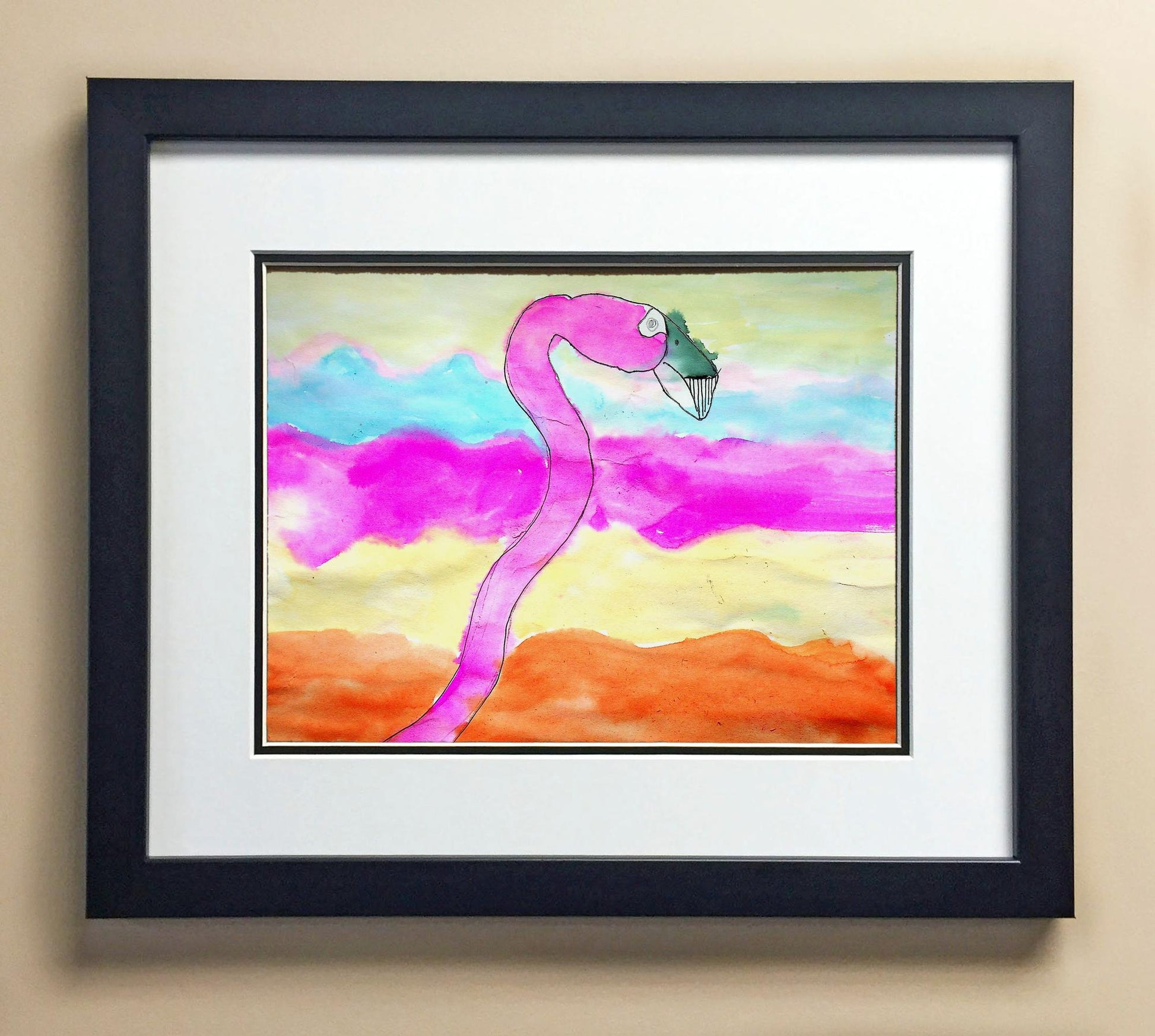 Included with the purchase is the Students Artwork, Frame, double matboard, shatter proof plexiglass, and a ready to hang backerboard with turnbuttons