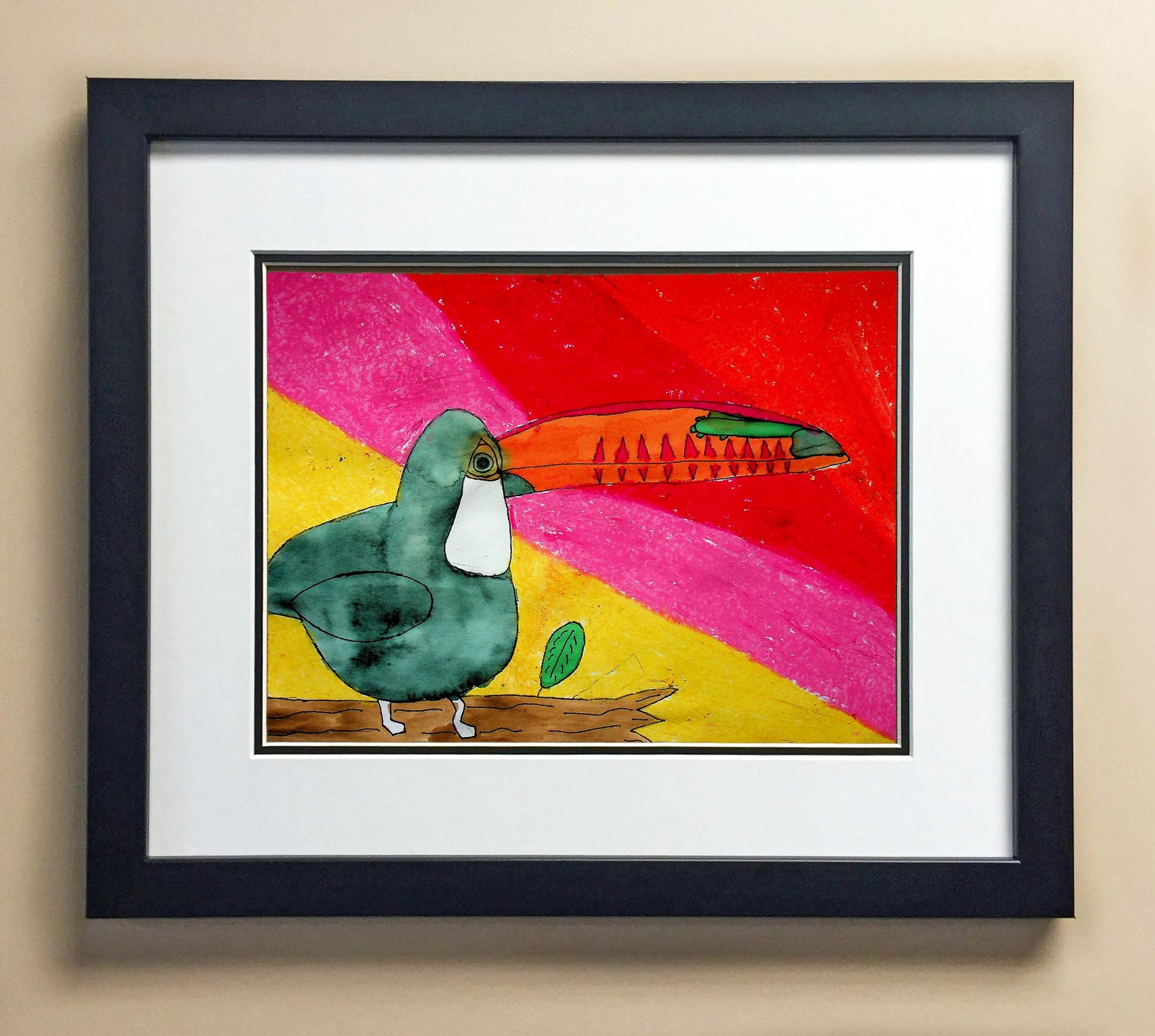 Included with the purchase is the Students Artwork, Frame, double matboard, shatter proof plexiglass, and a ready to hang backerboard with turnbuttons