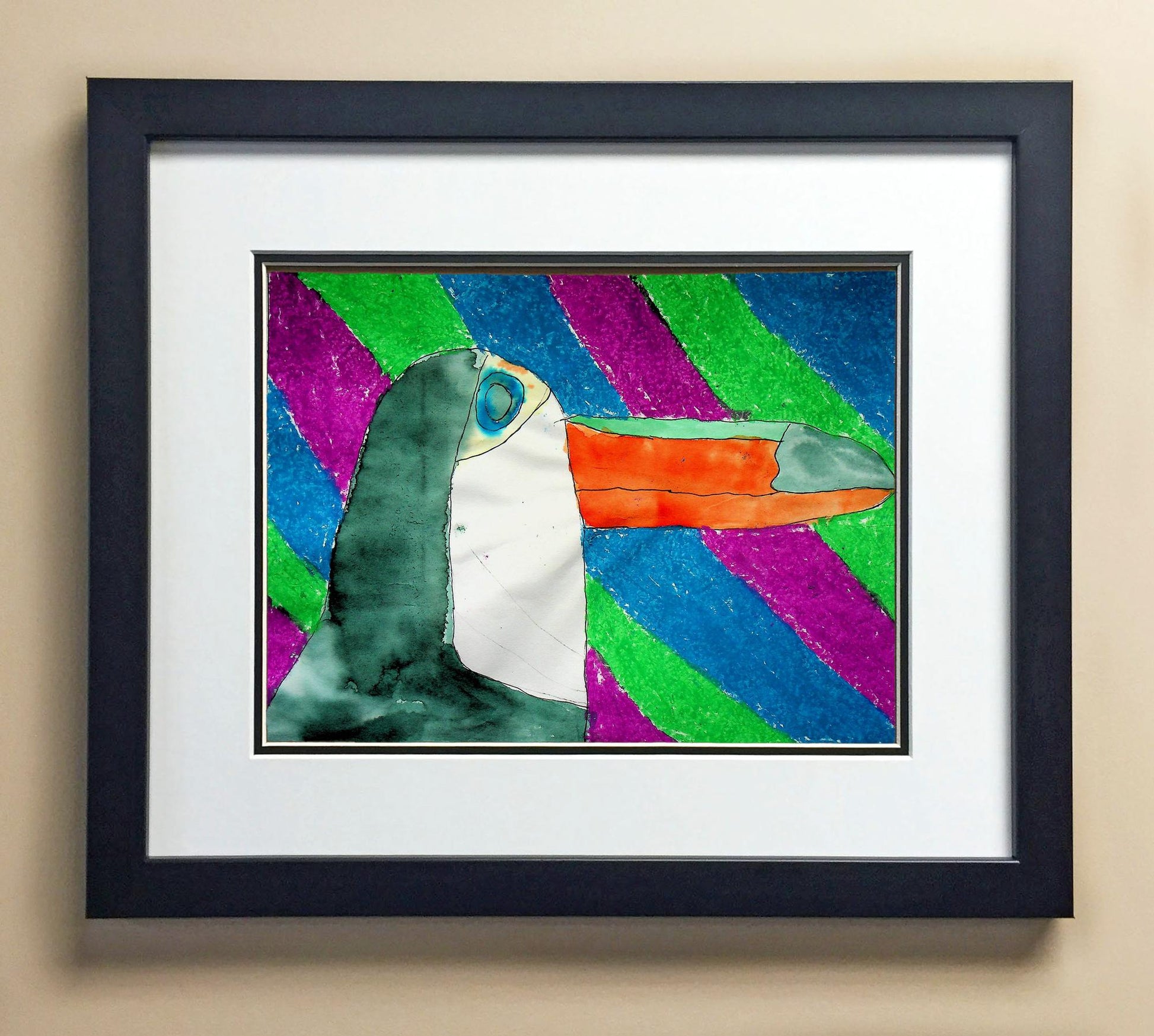 Included with the purchase is the Students Artwork, Frame, double matboard, shatter proof plexiglass, and a ready to hang backerboard with turnbuttons