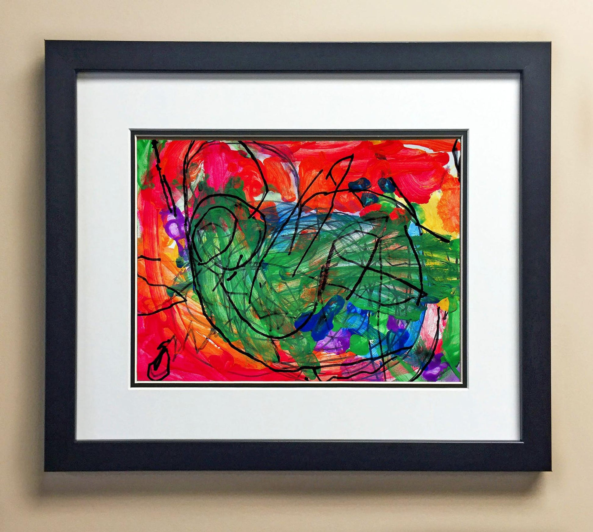 Included with the purchase is the Students Artwork, Frame, double matboard, shatter proof plexiglass, and a ready to hang backerboard with turnbuttons