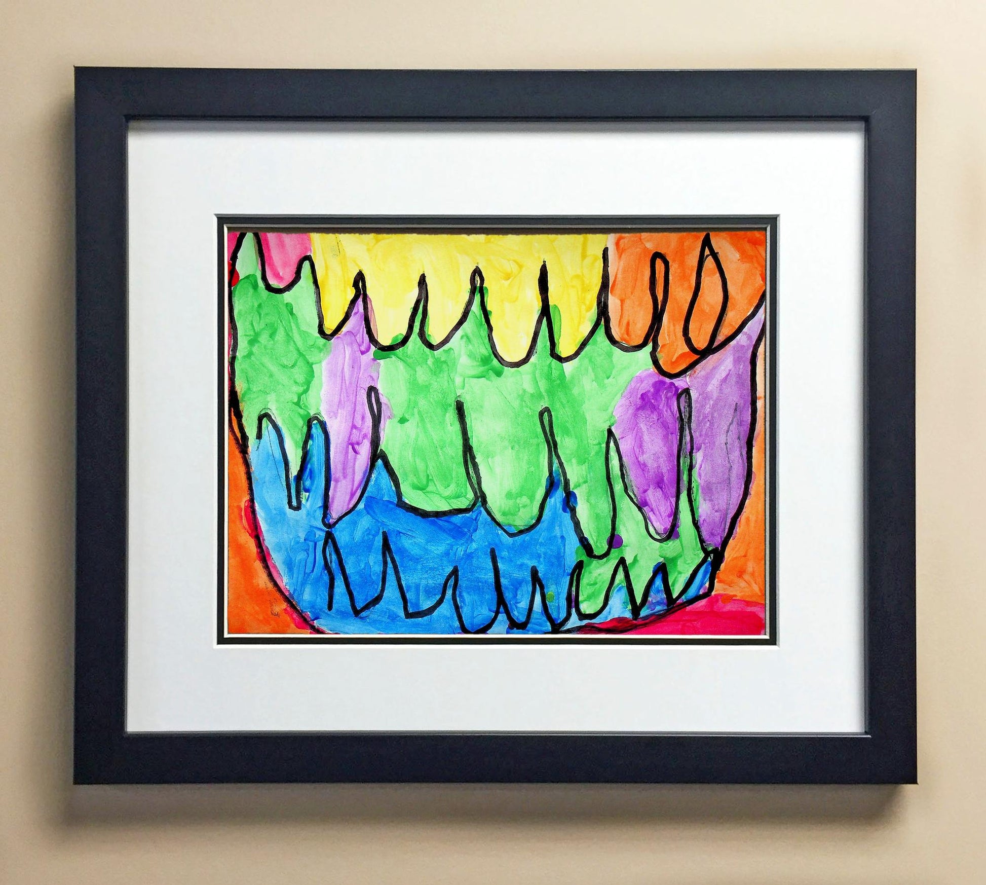 Included with the purchase is the Students Artwork, Frame, double matboard, shatter proof plexiglass, and a ready to hang backerboard with turnbuttons