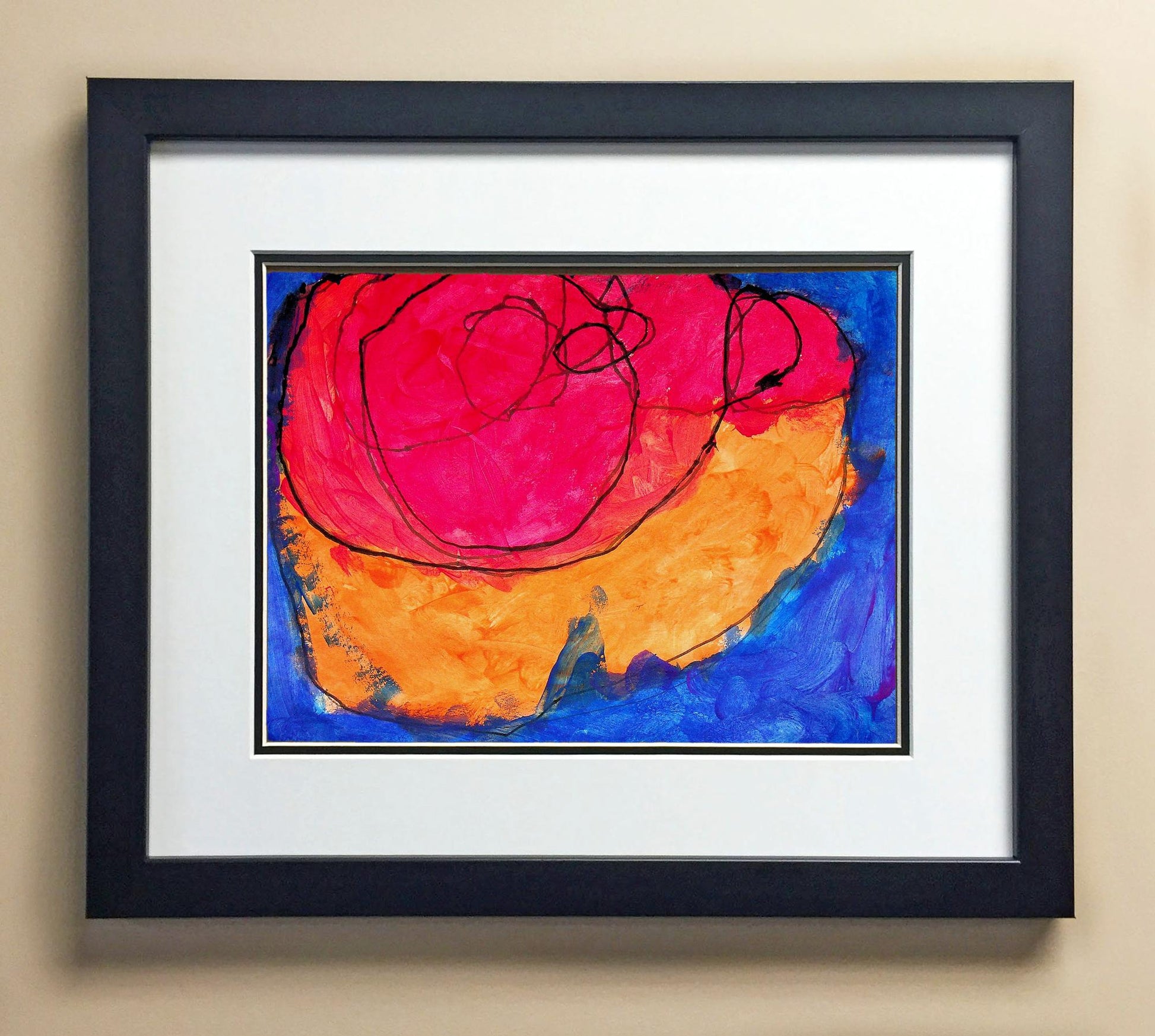 Included with the purchase is the Students Artwork, Frame, double matboard, shatter proof plexiglass, and a ready to hang backerboard with turnbuttons