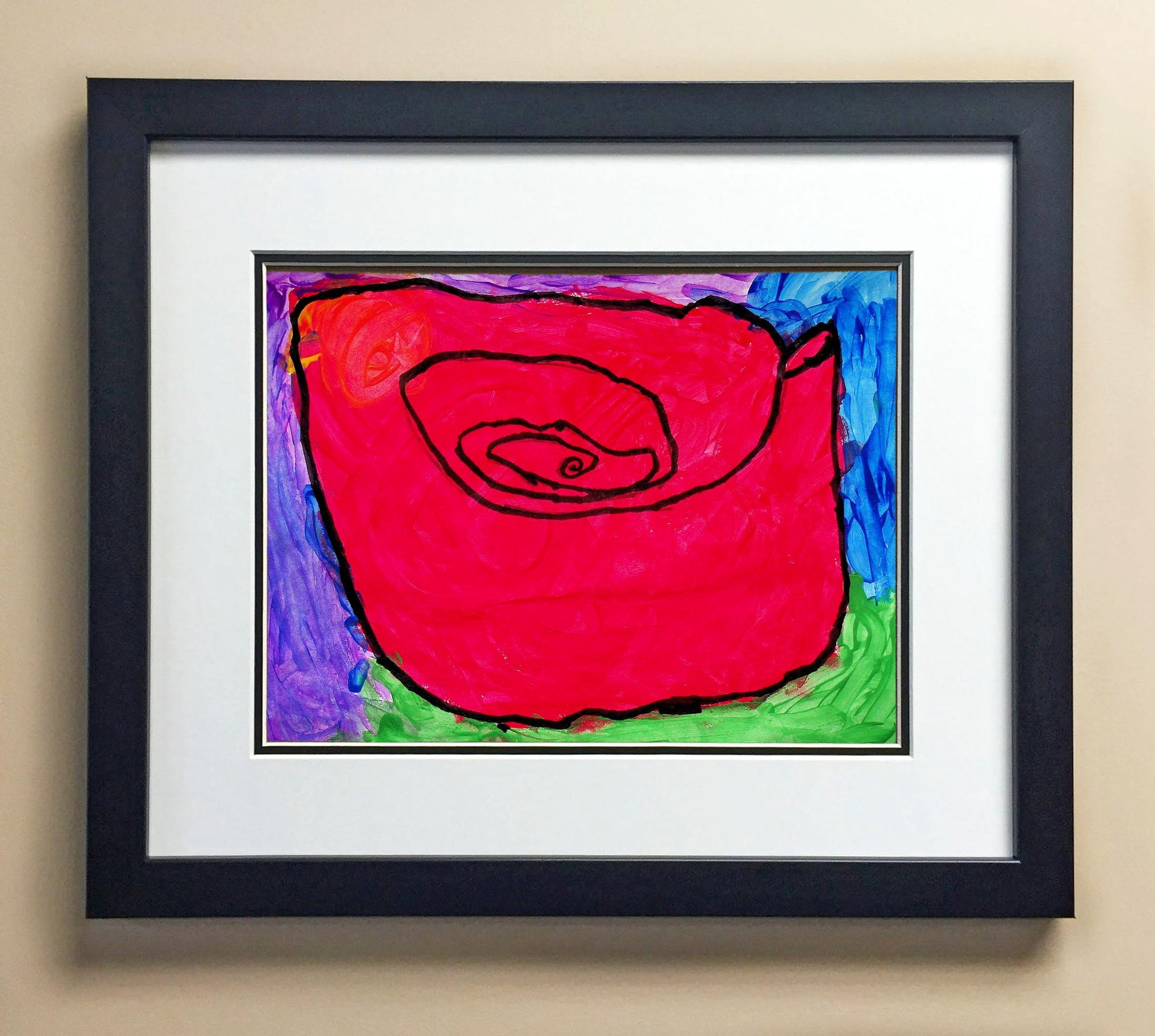 Included with the purchase is the Students Artwork, Frame, double matboard, shatter proof plexiglass, and a ready to hang backerboard with turnbuttons